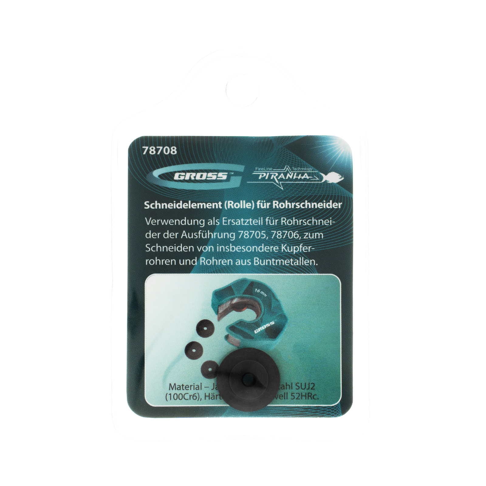 Режущий элемент (ролик) Gross 78708 размером 4,5 х 3 х 16 мм устанавливается на труборезы Gross 78705 и 78706 для резки труб из цветных металлов. Используется в качестве основного или запасного режущего элемента.