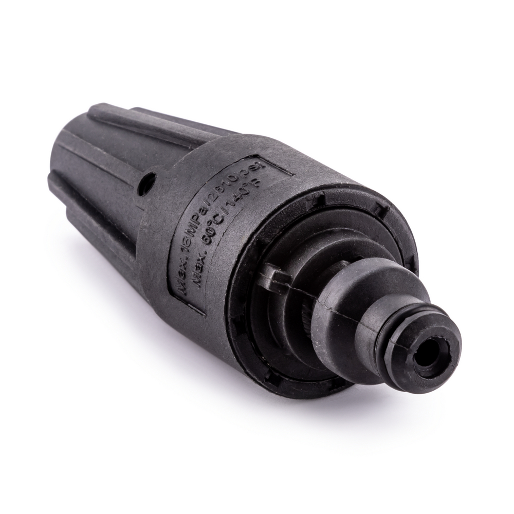 Роторная турбонасадка KVAZARRUS AG1175 формирует точечную струю с вращением за счет роторного механизма. Увеличенное ударное давление позволяет существенно повысить эффективность очистки, при этом, за счет вращения с помощью роторного механизма обеспечивается также большее пятно контакта, в сравнении с работой традиционного точечного сопла, что в свою очередь, позволяет увеличить площадь очищаемой поверхности и скорость очистки. Подходит для удаления стойких загрязнений с твердых поверхностей, например, присохшей грязи с суглинком и т.п. Роторная турбонасадка устанавливается на удлинительный адаптер пистолета-распылителя AG1175 и совместима с мойками высокого давления KVAZARRUS K3, K4, K5 Base, K5 Standart.