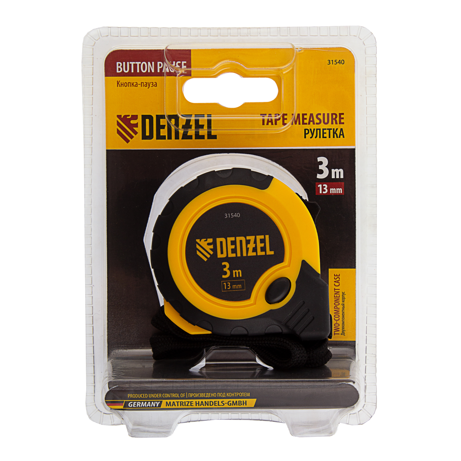 Рулетка 3м х 13мм, двухкомп. корпус, кнопка-пауза Denzel в Санкт-Петербурге
