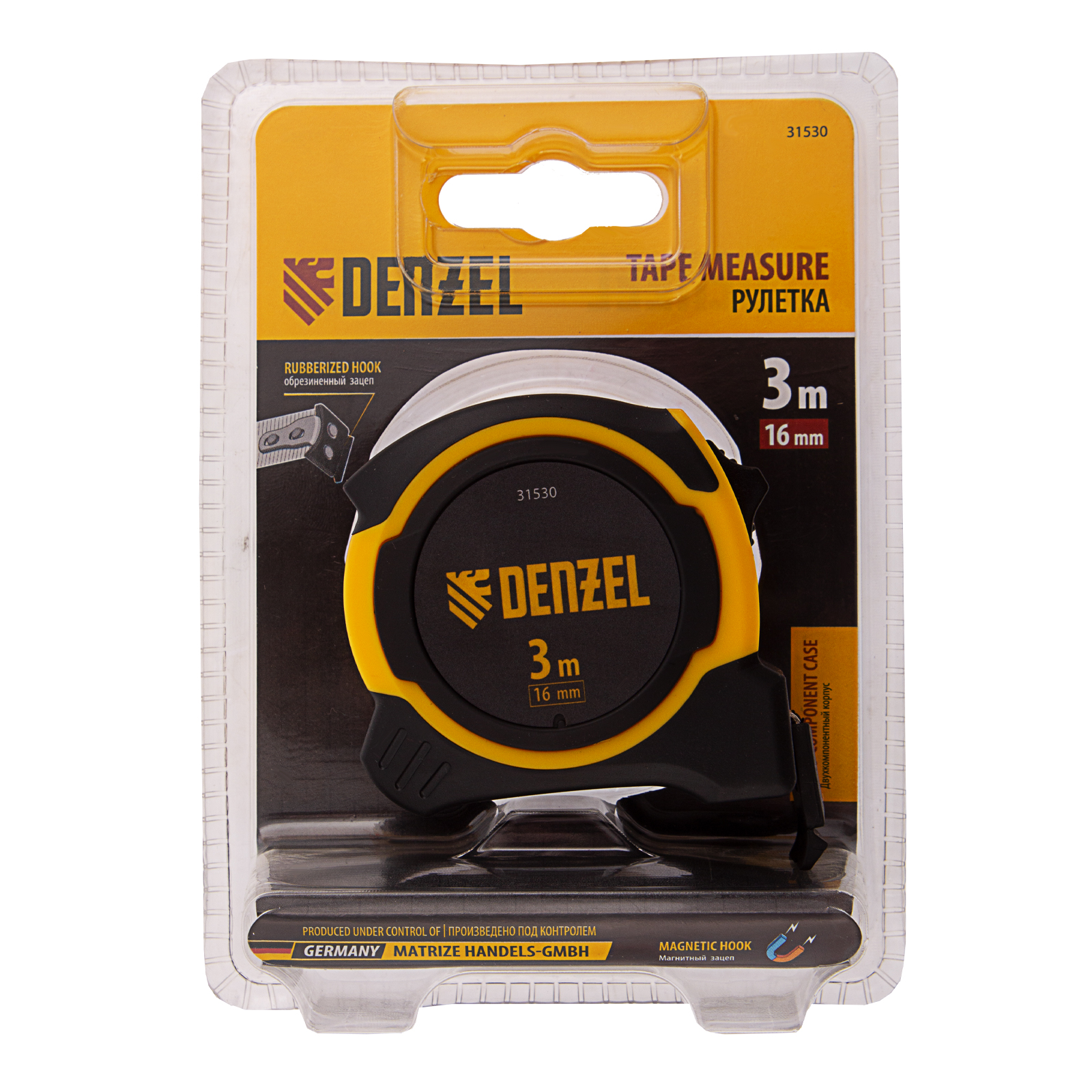 Рулетка 3м х 16мм, двухкомп. корпус, магнитный обрезиненный зацеп Denzel в Санкт-Петербурге