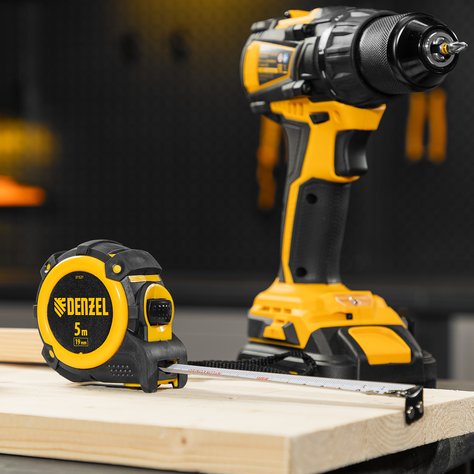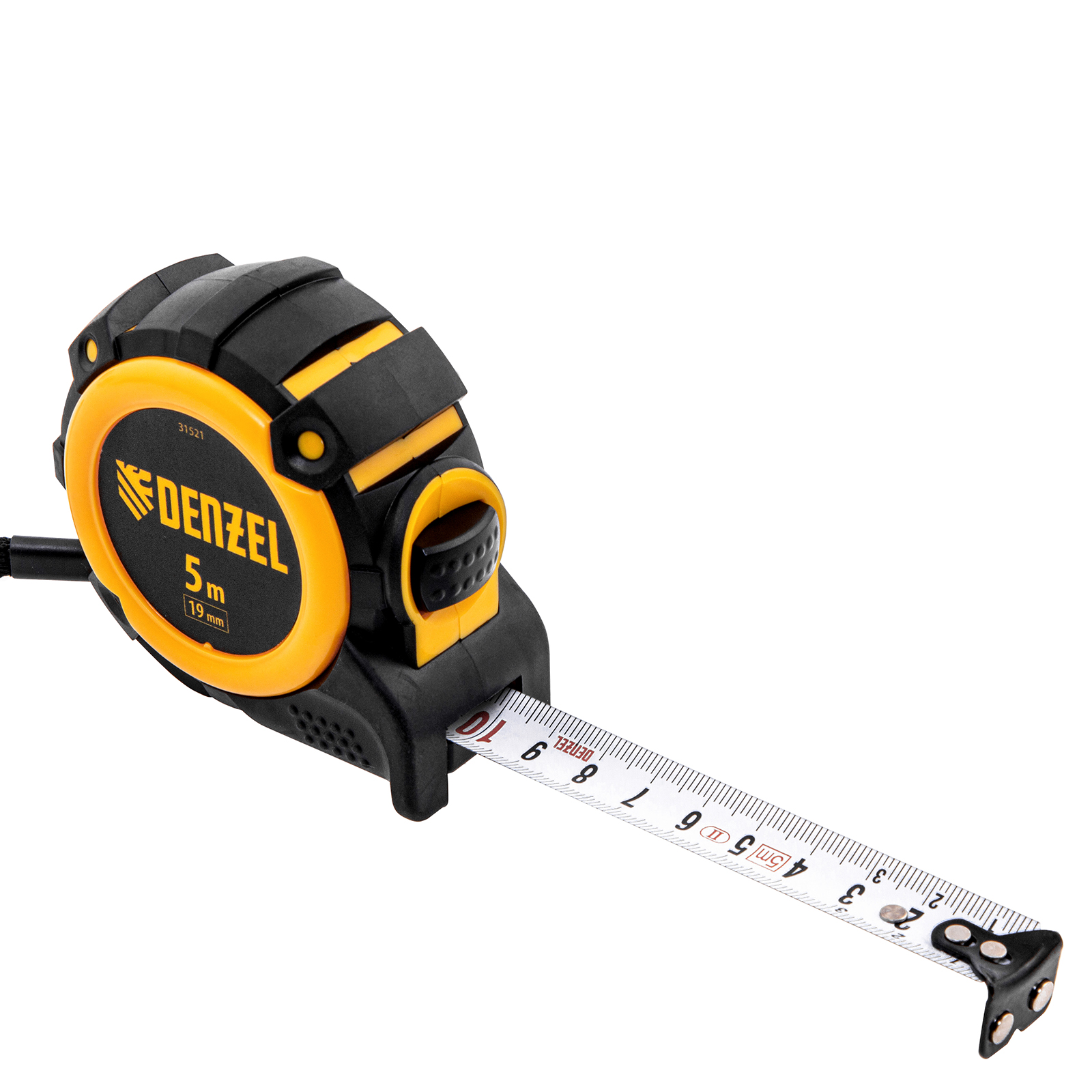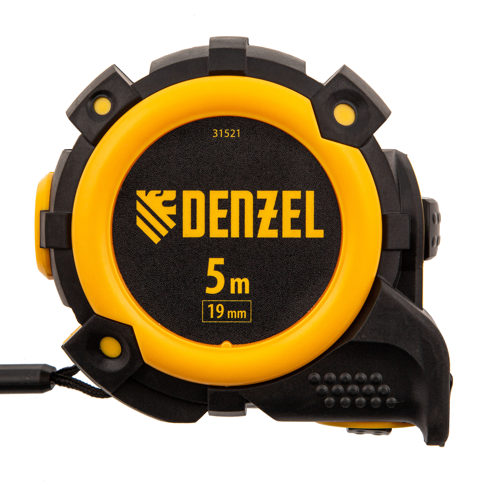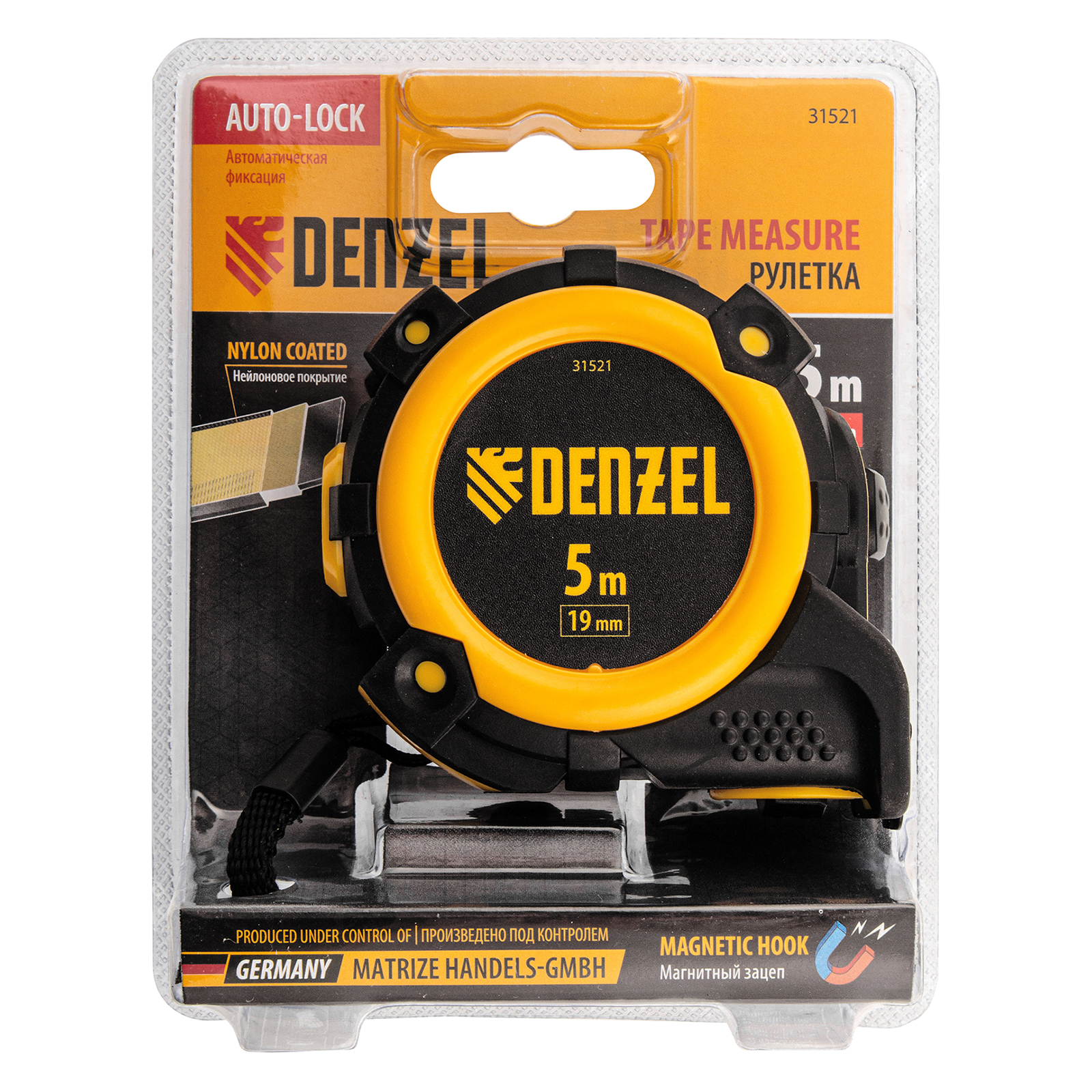 Рулетка 5м х 19мм, автоматич. фиксац., нейлон. покрытие, магнит. зацеп, двухстор. разметка Denzel