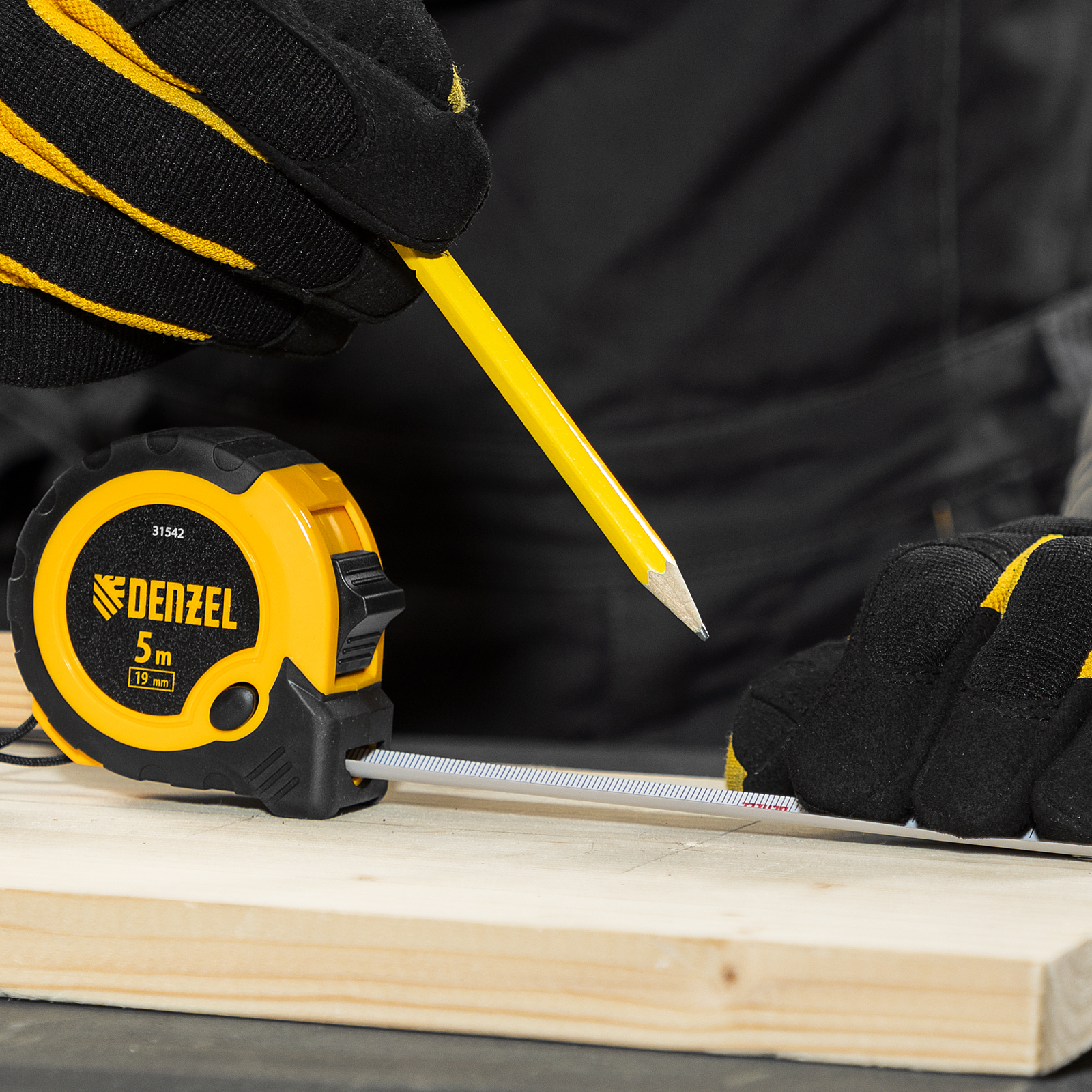 Рулетка 5м х 19мм, двухкомп. корпус, кнопка-пауза Denzel