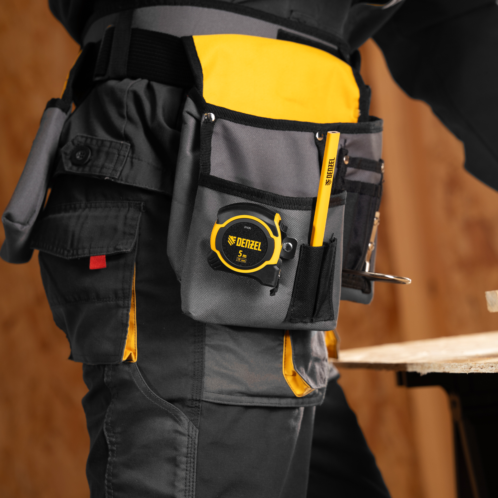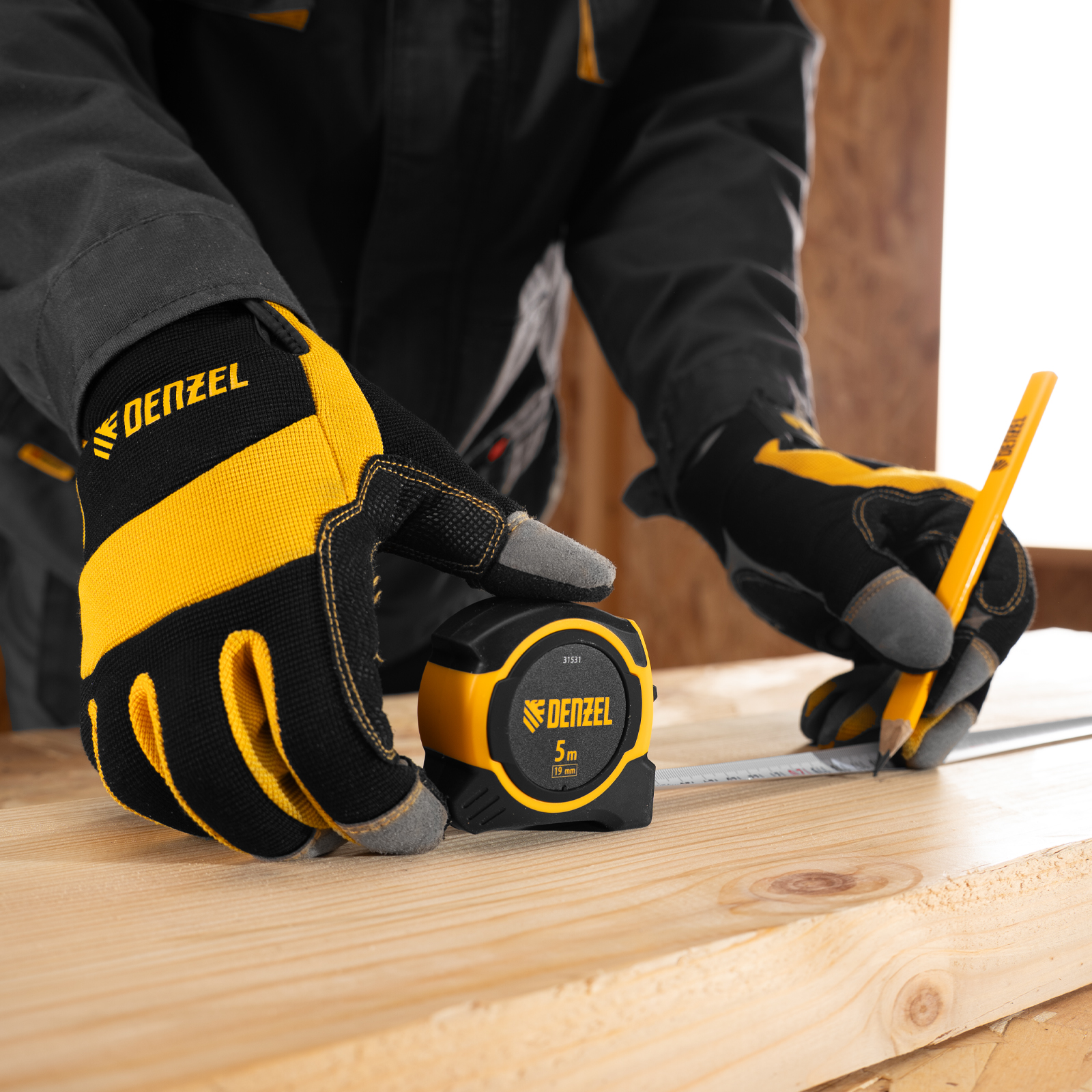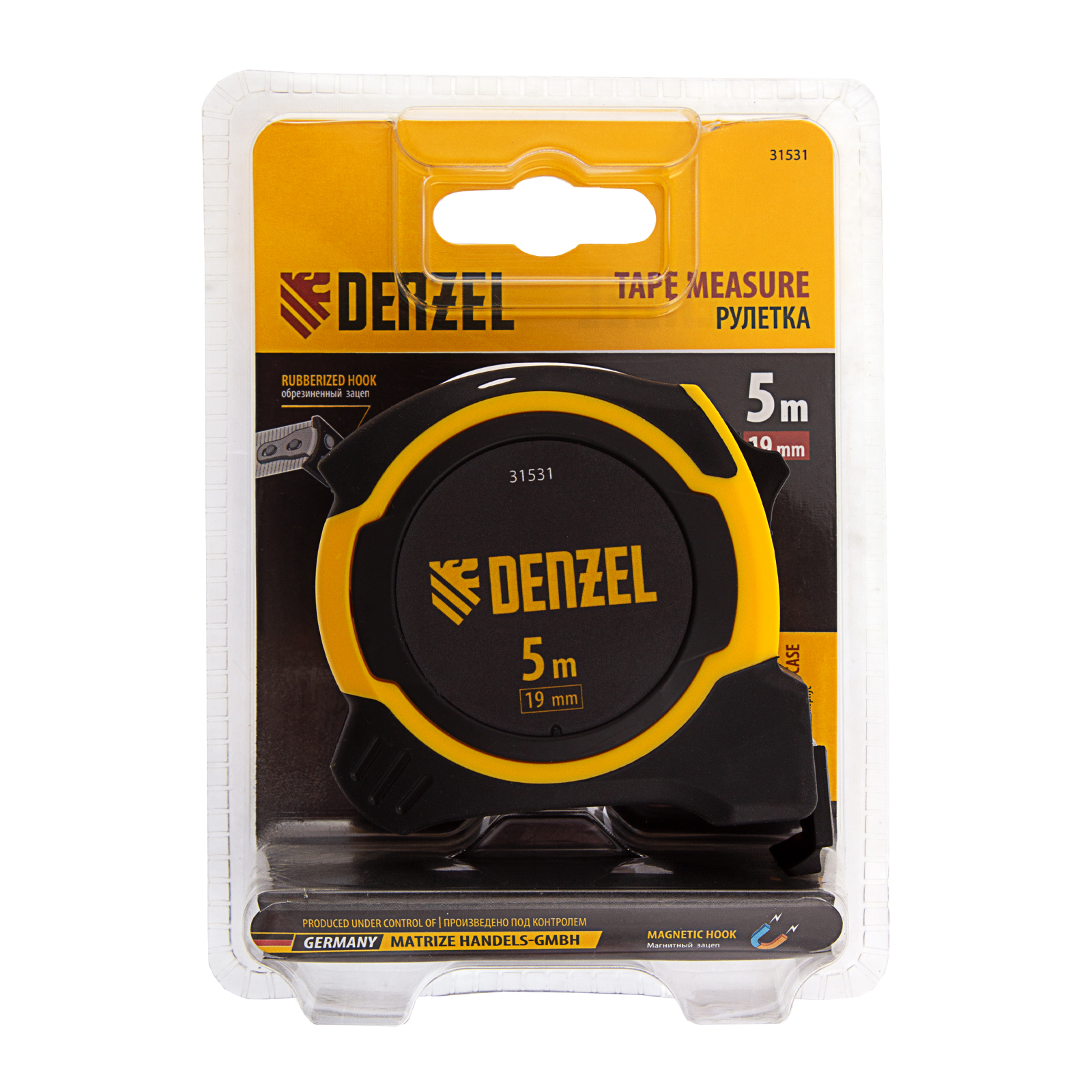 Рулетка 5м х 19мм, двухкомп. корпус, магнитный обрезиненный зацеп Denzel