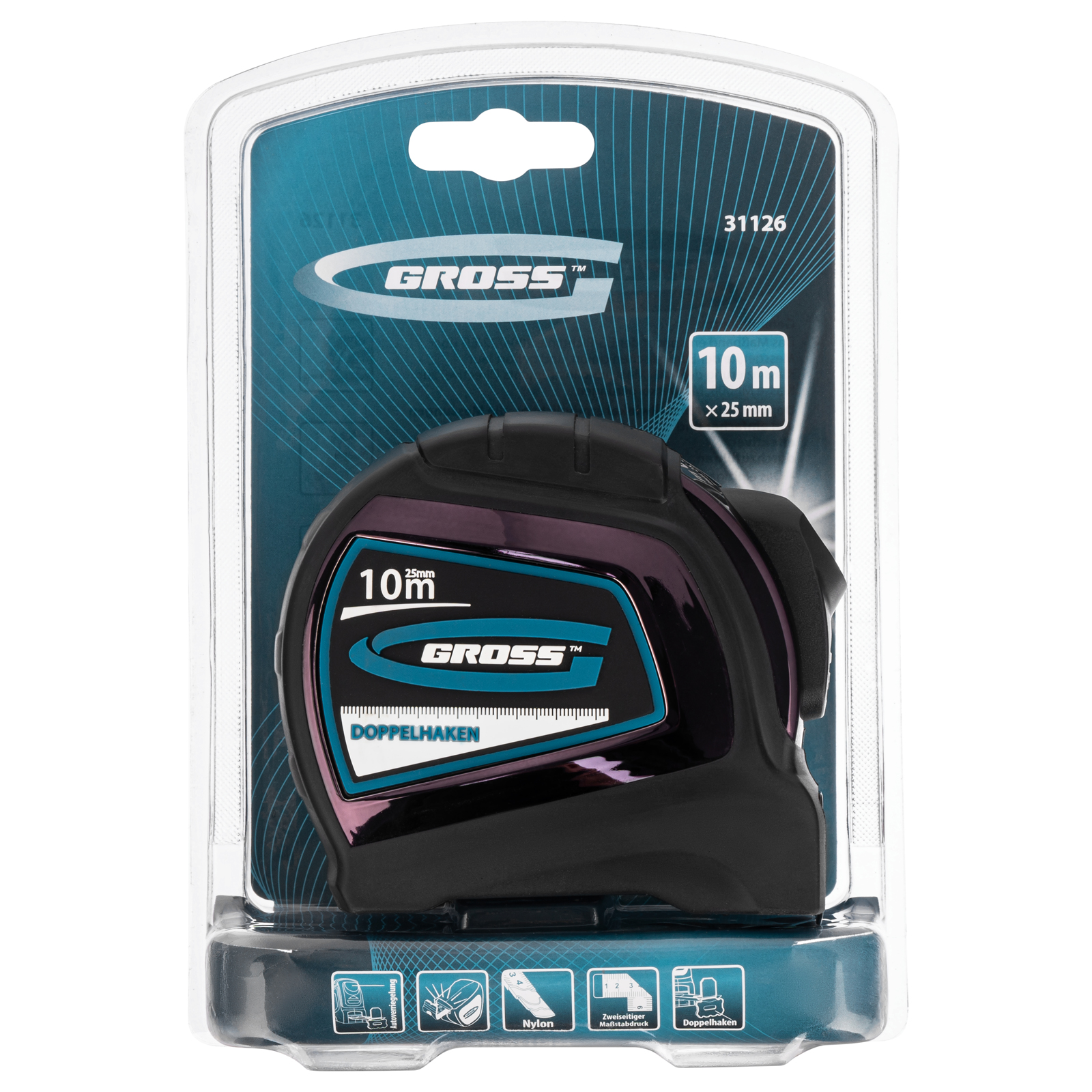 Рулетка "Doppelhaken",10 м x 25 мм,двухсторонний зацеп,Нейлон,двусторонняя шкала,автоматическая фиксация Gross в Санкт-Петербурге