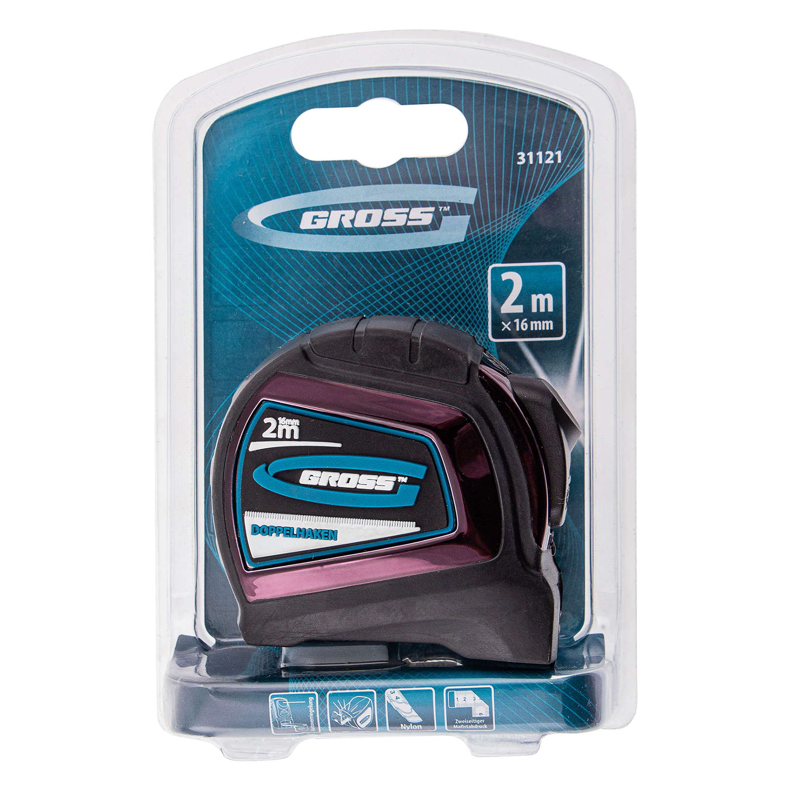 Рулетка "Doppelhaken",2 м x 16 мм,односторонний зацеп,Нейлон,двусторонняя шкала,автоматическая фиксация Gross в Санкт-Петербурге