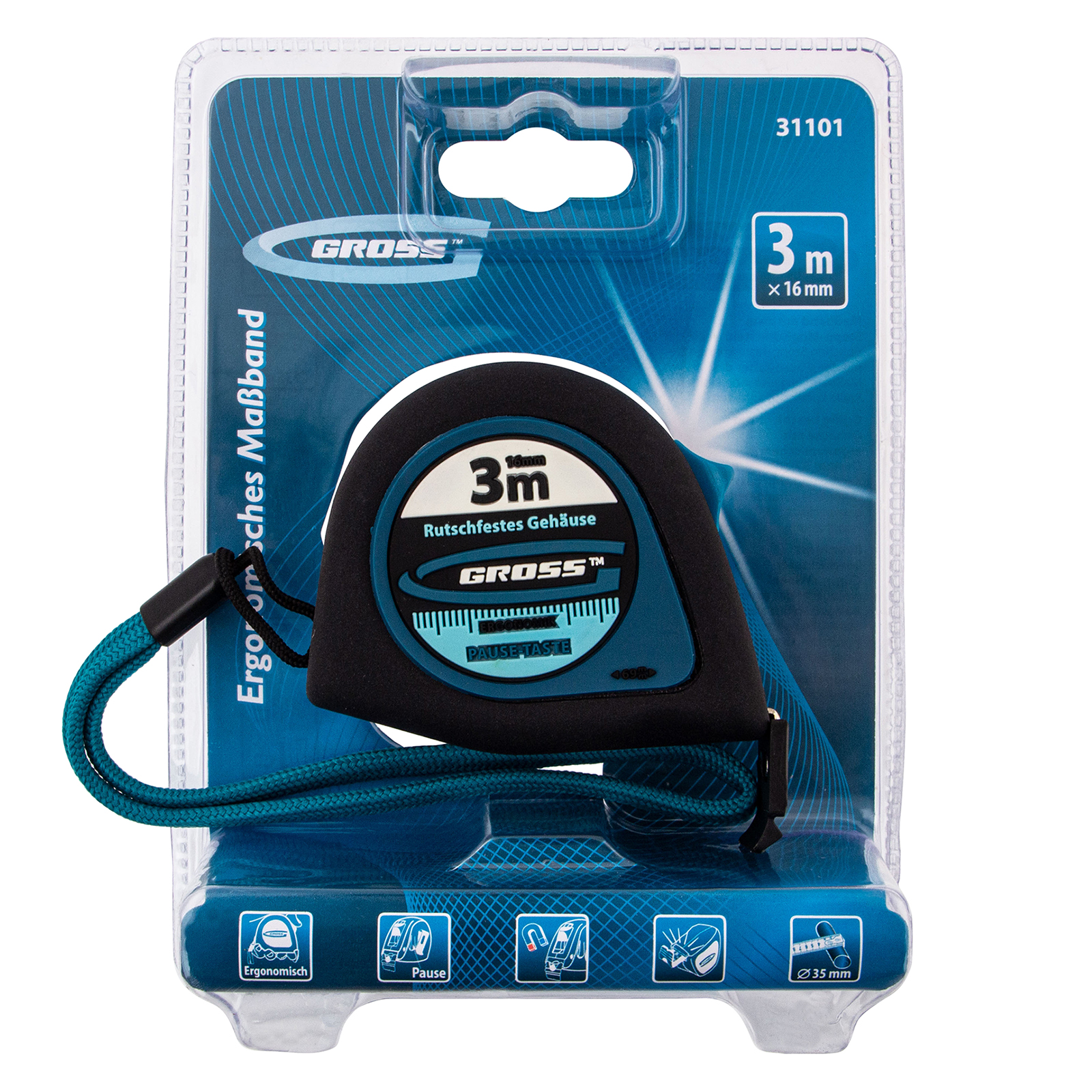 Рулетка "Ergonomisch",3 м x 16 мм,магнитный обрезиненный зацеп Gross в Санкт-Петербурге