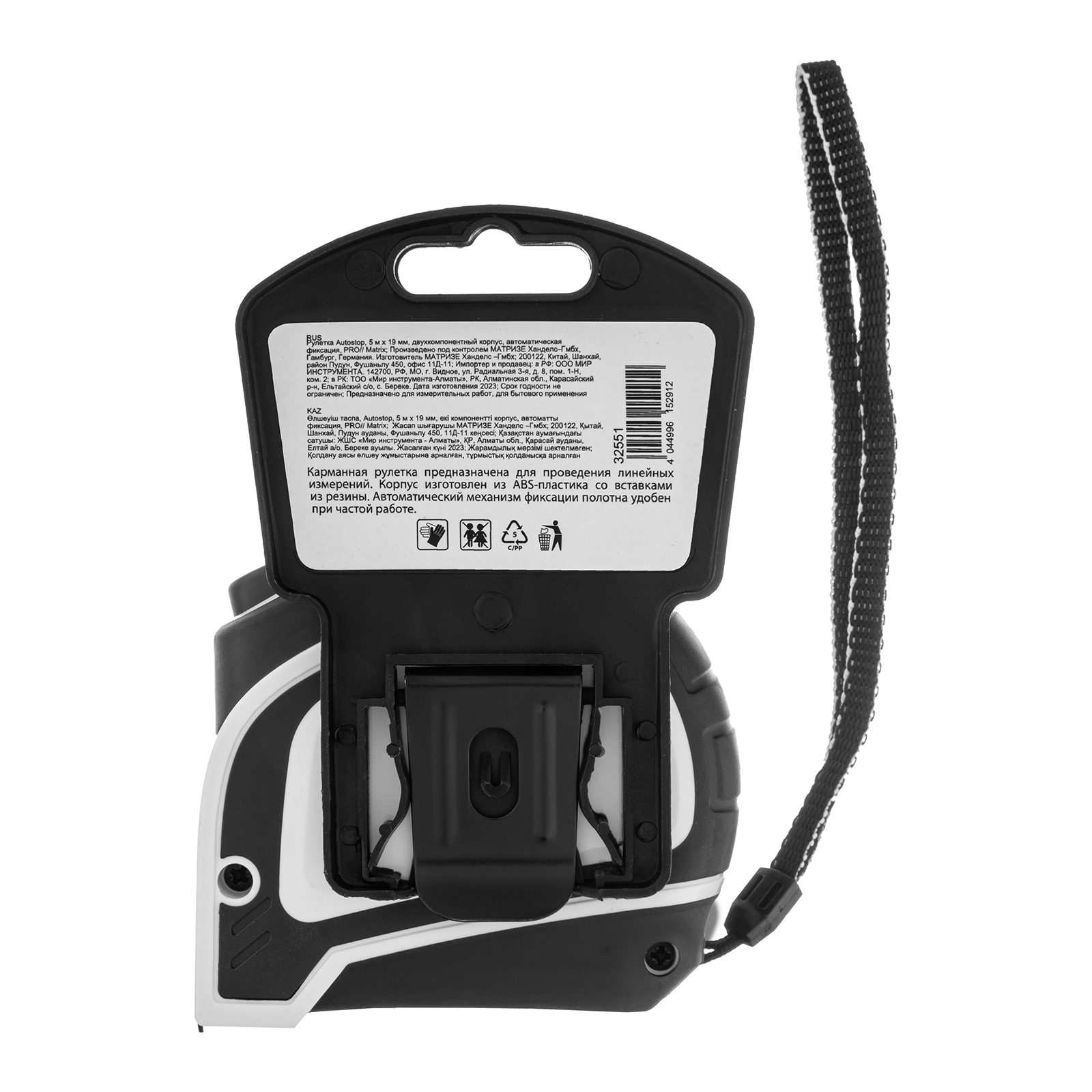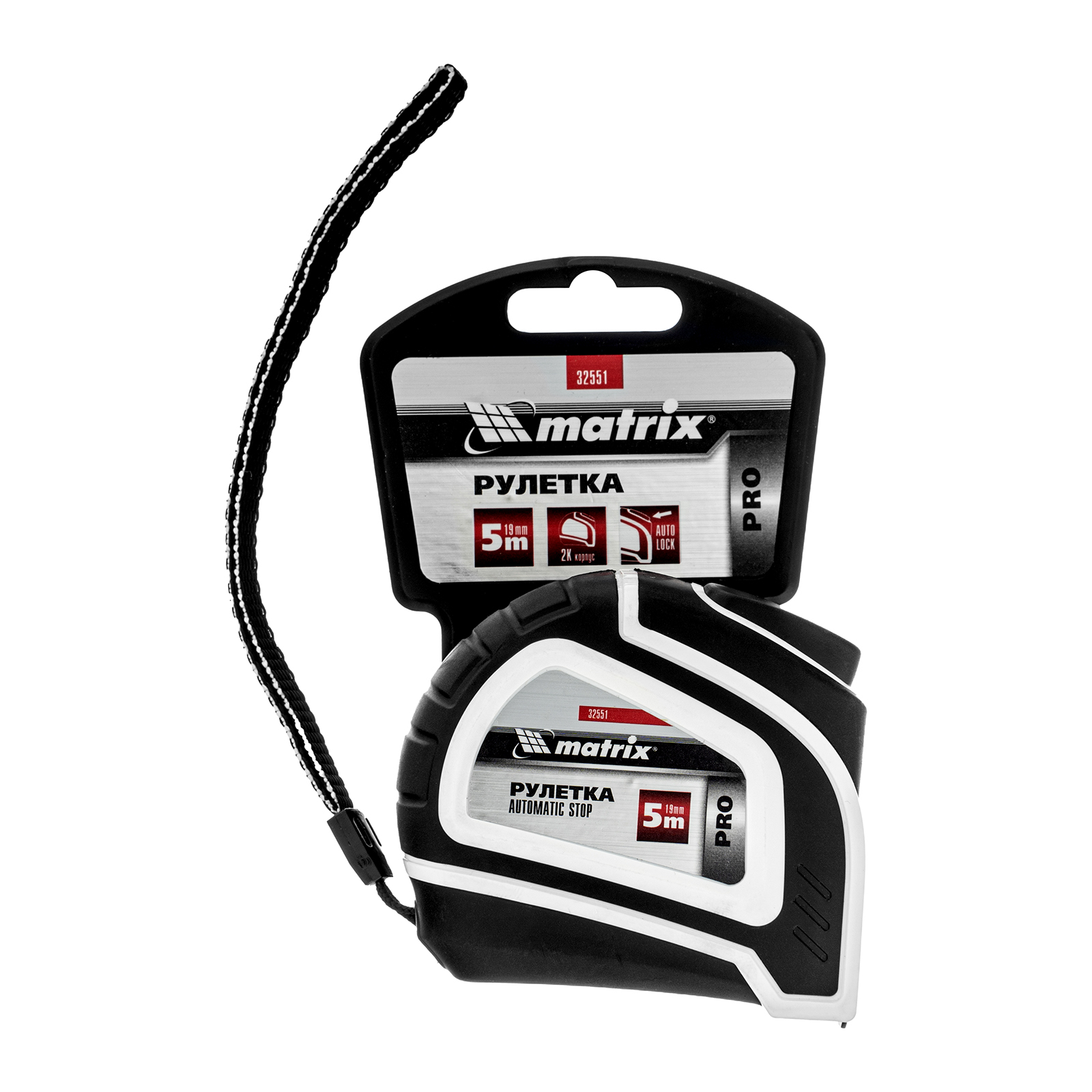 Рулетка Autostop,5 м х 19 мм,двухкомпонентный корпус,автоматическая фиксация,Pro Matrix в Санкт-Петербурге
