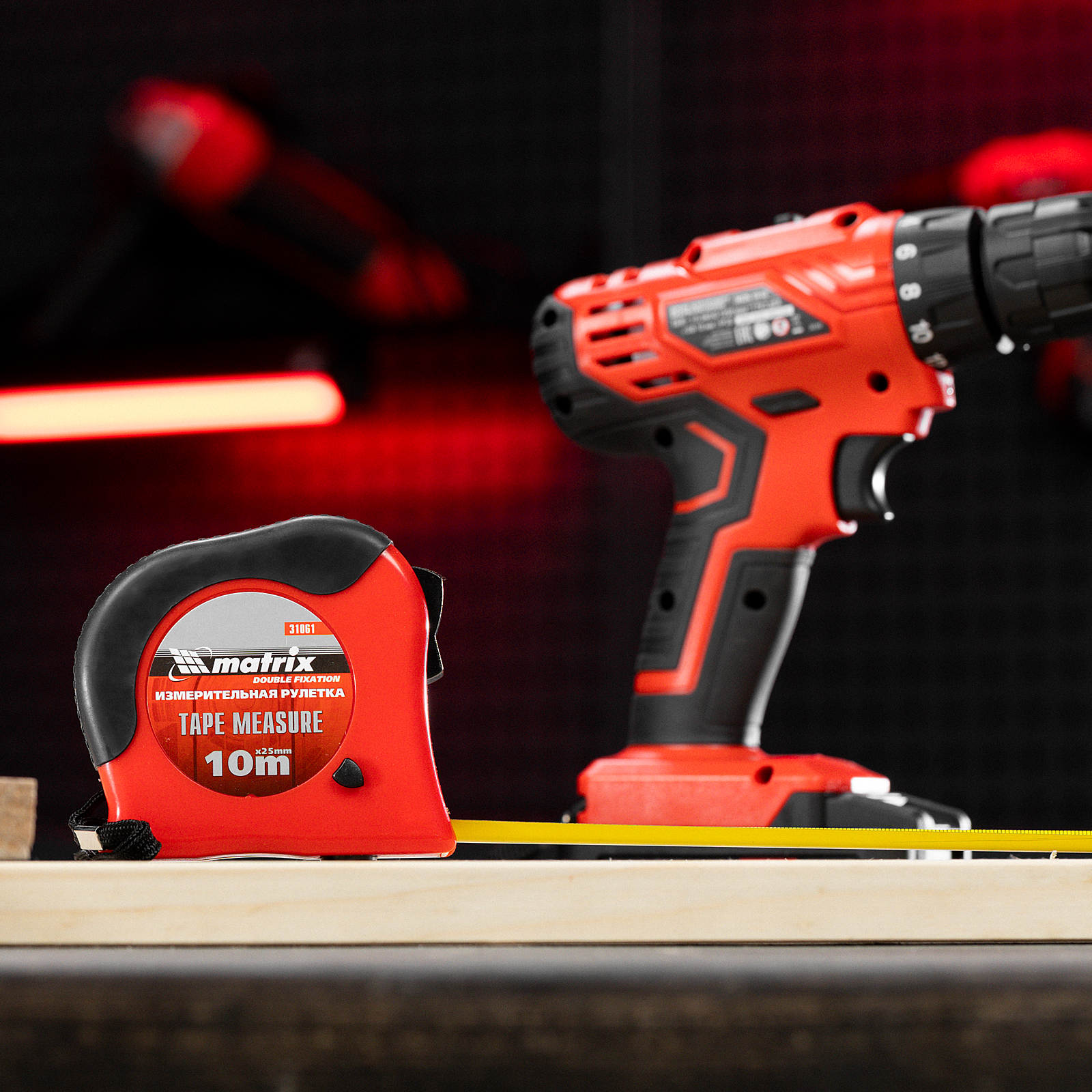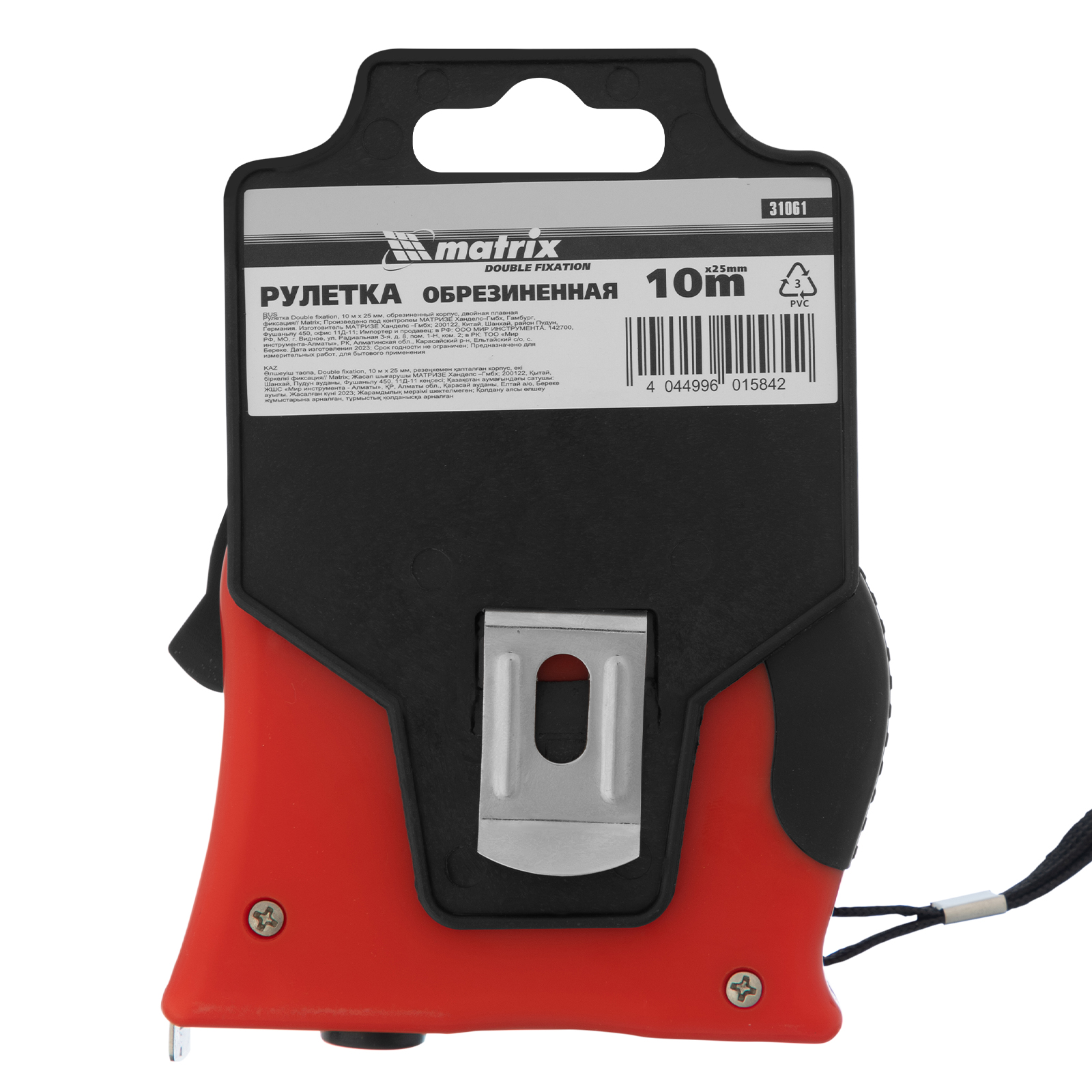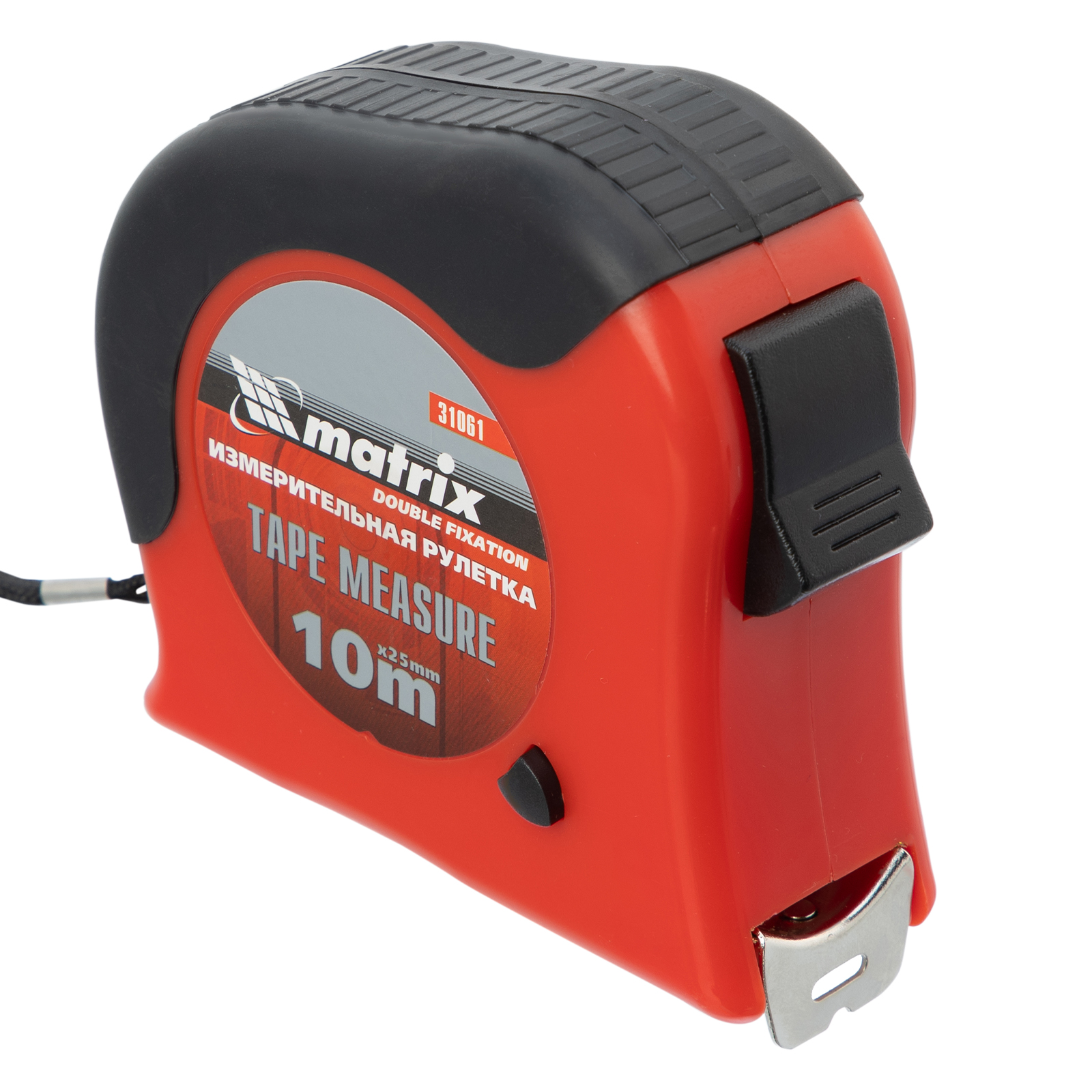 Рулетка Double fixation,10 м х 25 мм,обрезиненный корпус,двойная плавная фиксация Matrix в Санкт-Петербурге