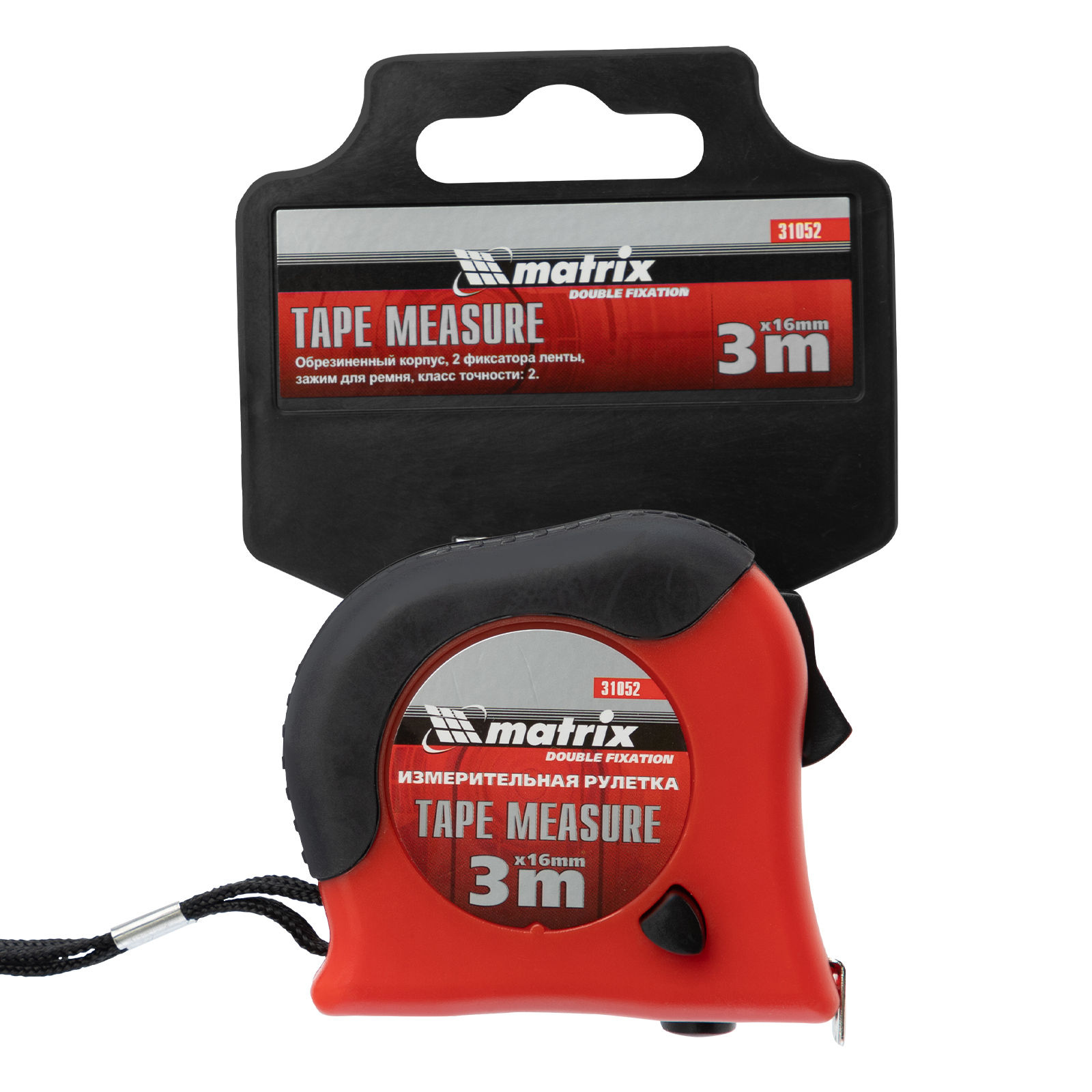 Рулетка Double fixation,3 м х 16 мм,обрезиненный корпус,двойная плавная фиксация Matrix в Санкт-Петербурге