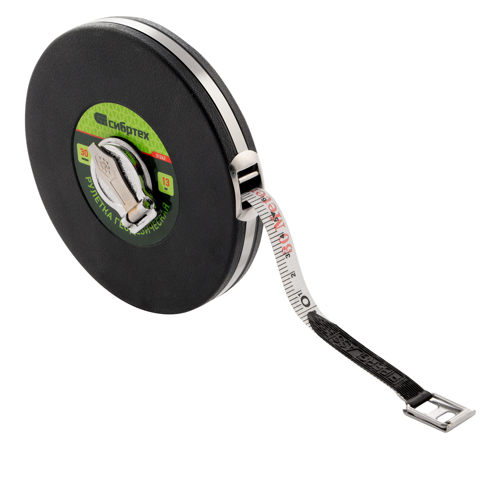 Рулетка геодезическая 30 м х 13 мм, закрытый корпус, фибергласовая лента Сибртех в Санкт-Петербурге