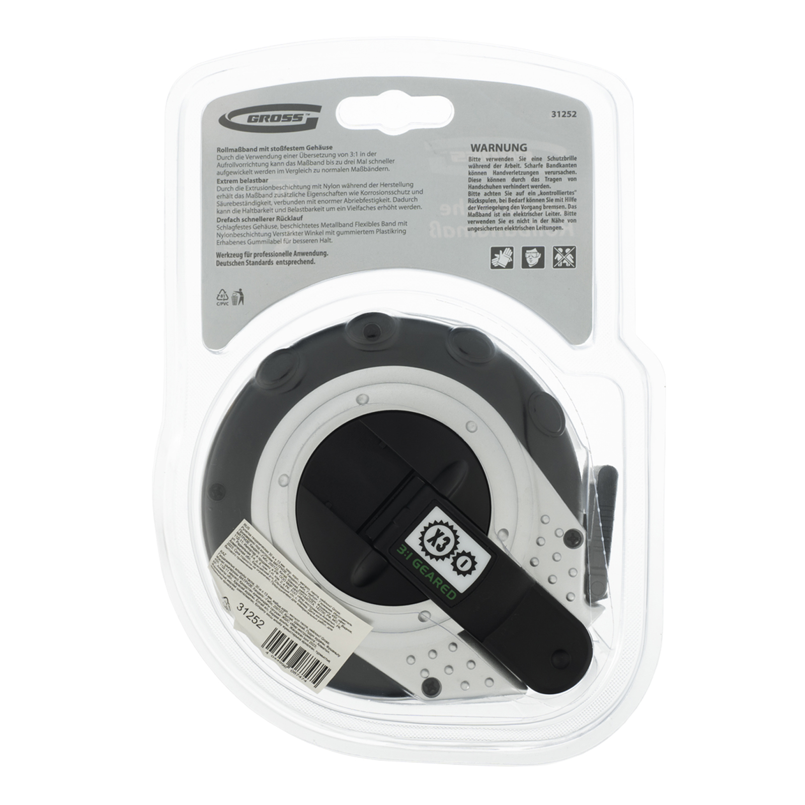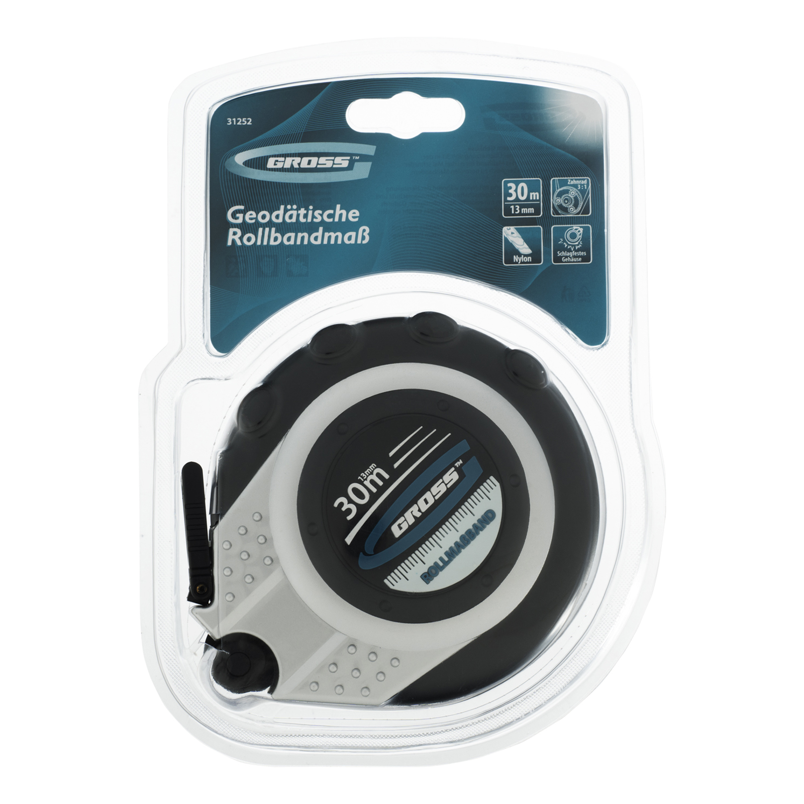 Геодезическая рулетка Gross Rollmassband 31252 в закрытом корпусе, с металлической лентой длиной 30 м и шириной 13 мм, с нейлоновым покрытием, используется для определения расстояний и размеров различных объектов. Комбинированный зацеп упрощает фиксацию измерительной ленты на измеряемой поверхности. Инструмент будет полезен на строительной площадке или земельном участке, а также при проведении обмеров внутри помещений.