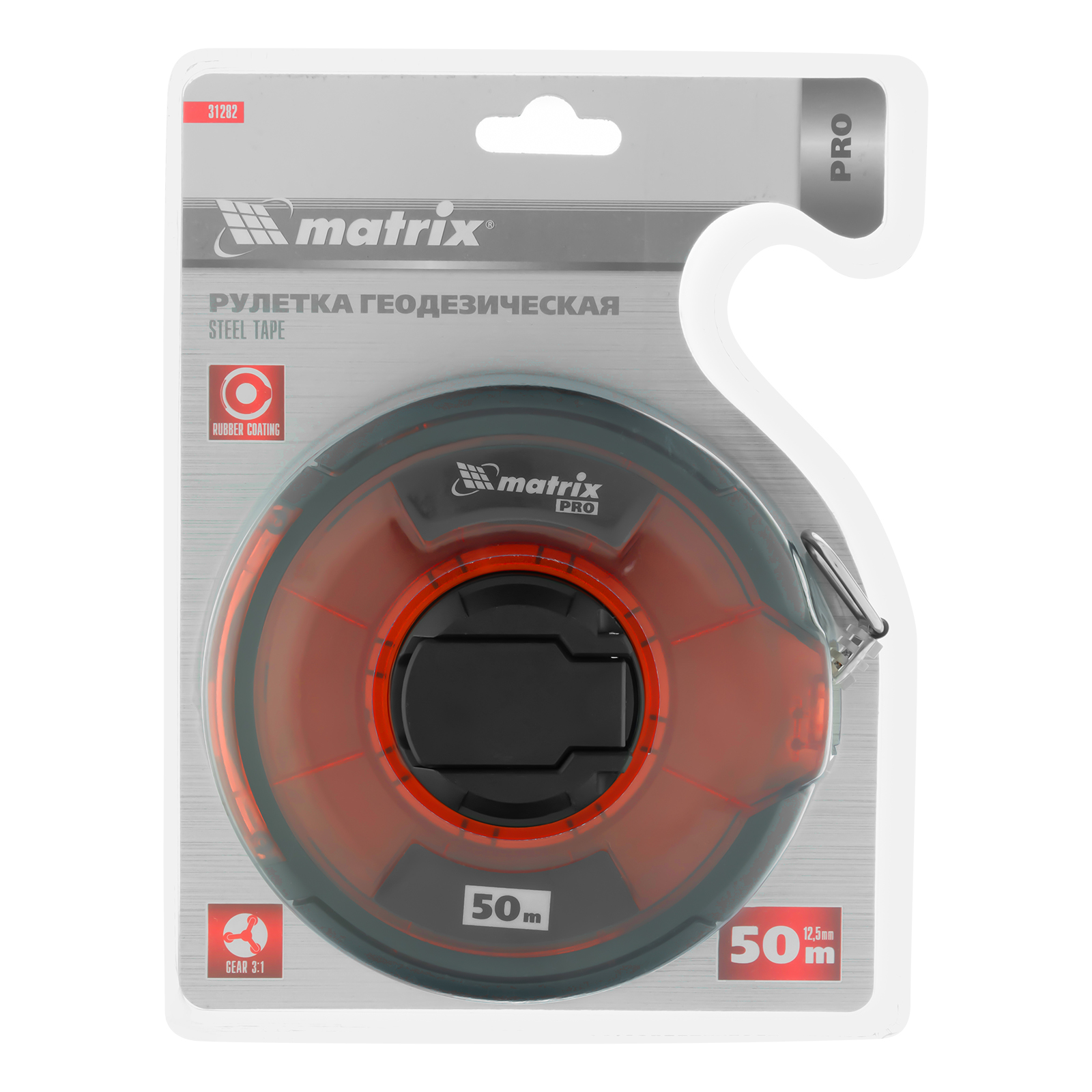 Рулетка геодезическая 50 м х 12,5 мм, закрытый корпус, стальная лента, односторонняя шкала, Pro Matrix в Санкт-Петербурге