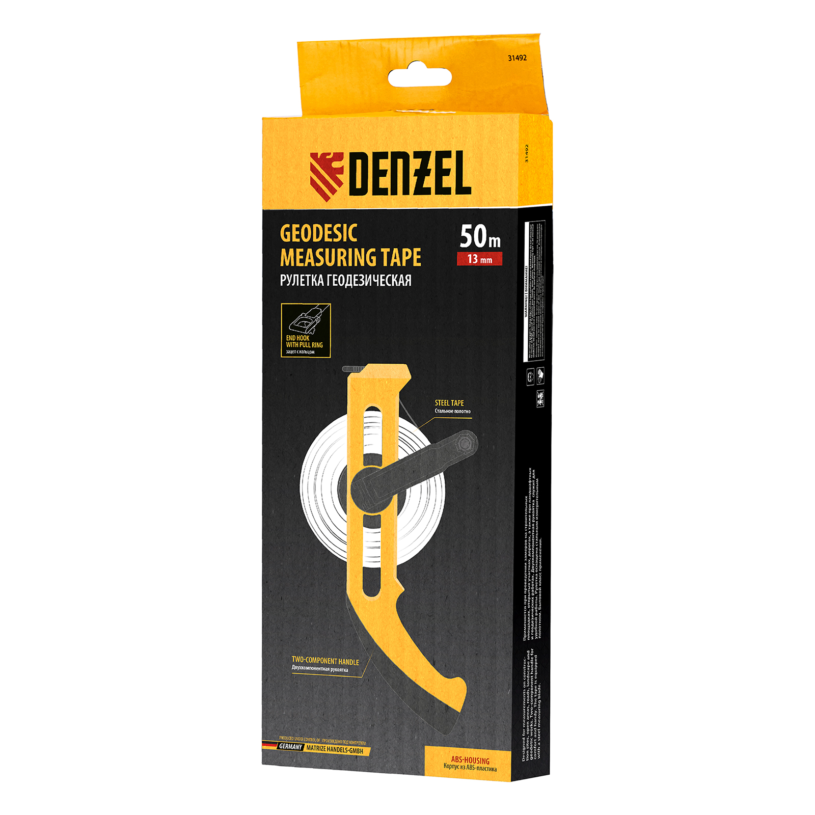 Рулетка геодезическая 50 м х 13 мм, открытый корпус, металлическая лента Denzel