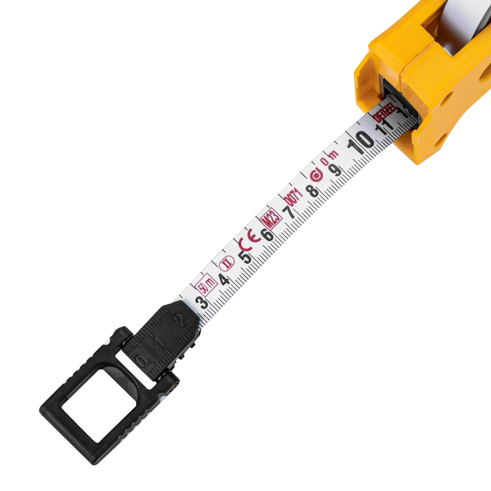 - Удобная фиксация измерительной ленты на объекте — рулетка оснащена кольцом с подвижным зацепом.