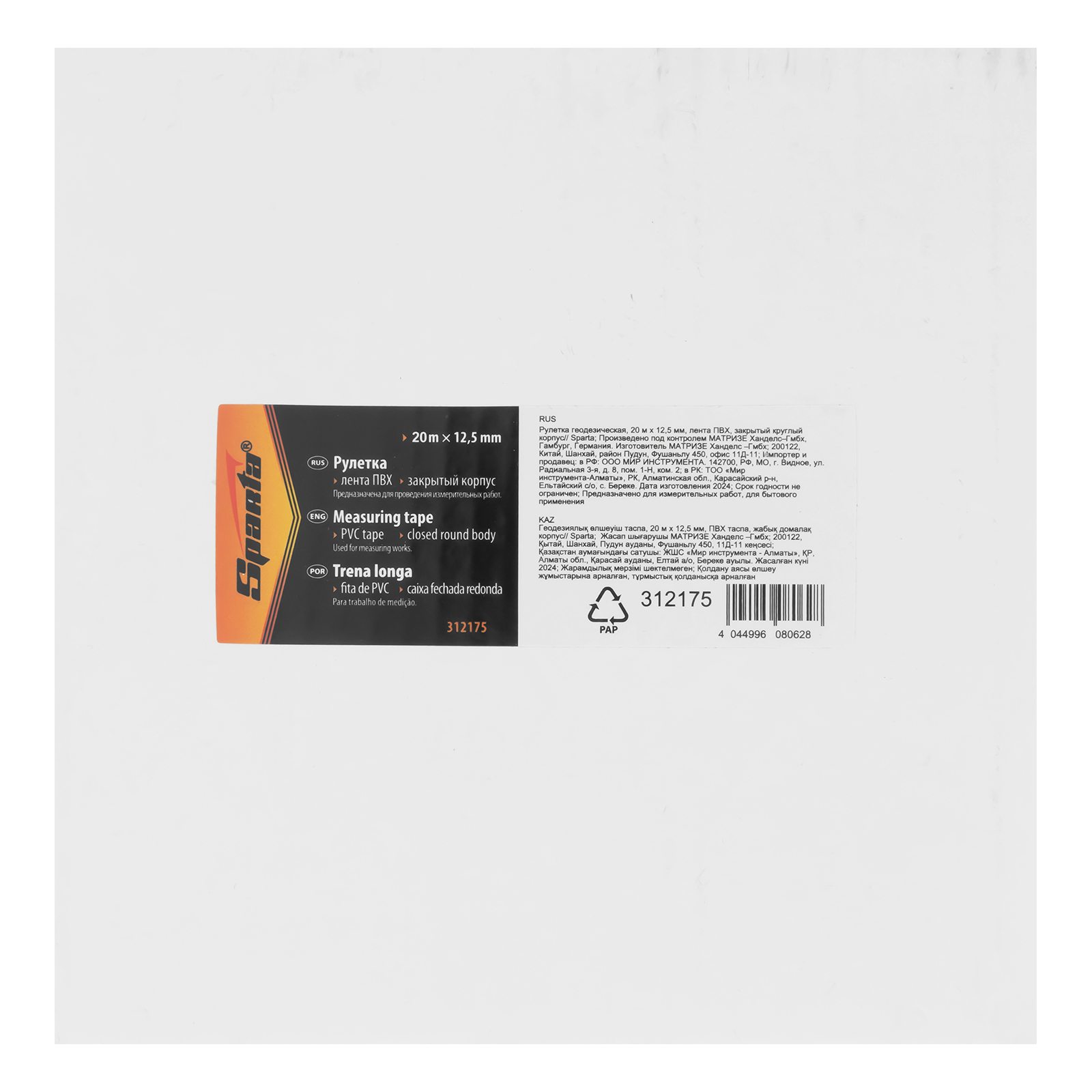 Рулетка геодезическая, 20 м х 12,5 мм, лента ПВХ, закрытый круглый корпус Sparta в Санкт-Петербурге