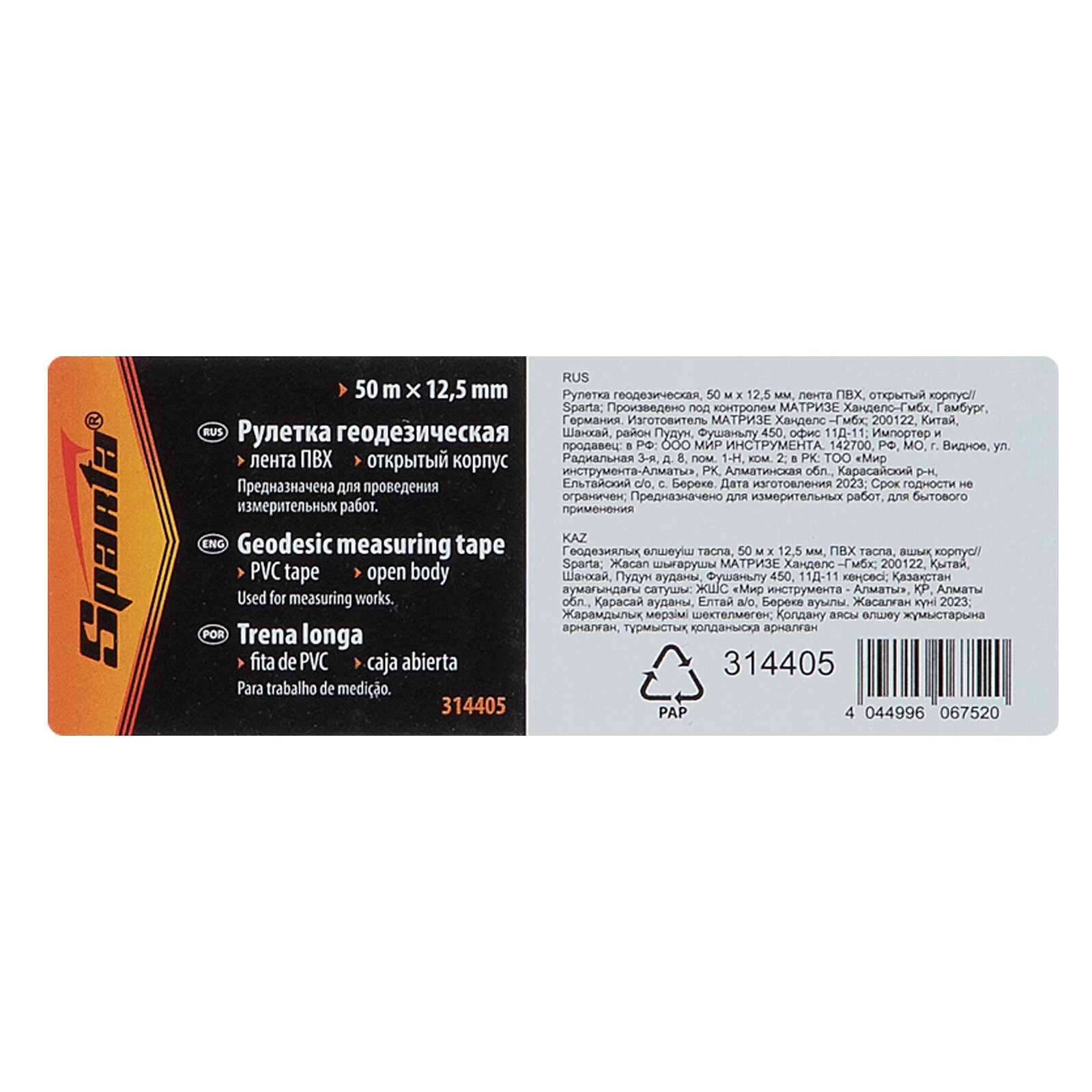 Геодезическая рулетка Sparta 314405 в открытом корпусе, с лентой из ПВХ шириной 12,5 мм, — измерительный инструмент для определения расстояний и размеров объектов до 50 м. Заостренный наконечник для фиксации в почве и кольцо-зацеп позволяют выполнять длинномерные измерения в одиночку. Рулетка удобна для замеров рельефных поверхностей, используется во время строительства, геодезических обследований, инвентаризации земельных участков, формирования ландшафтного дизайна.