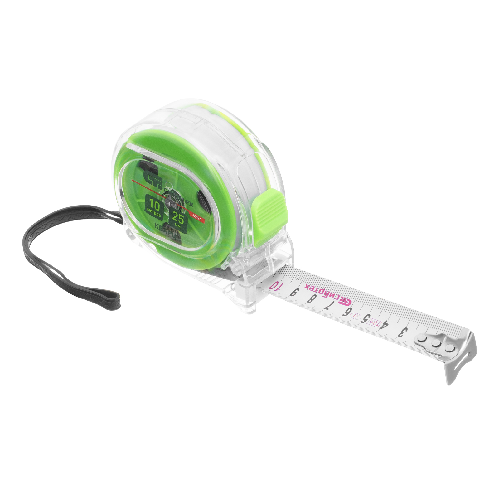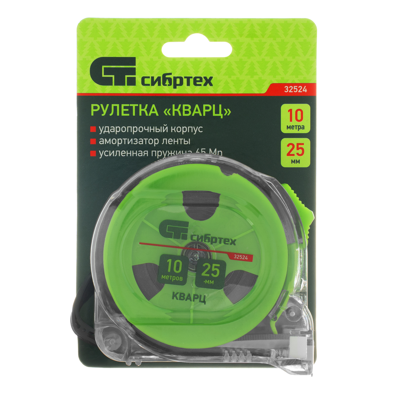 Рулетка Кварц,прозрачный корпус,амортизатор,10 м х 25 мм Сибртех в Санкт-Петербурге