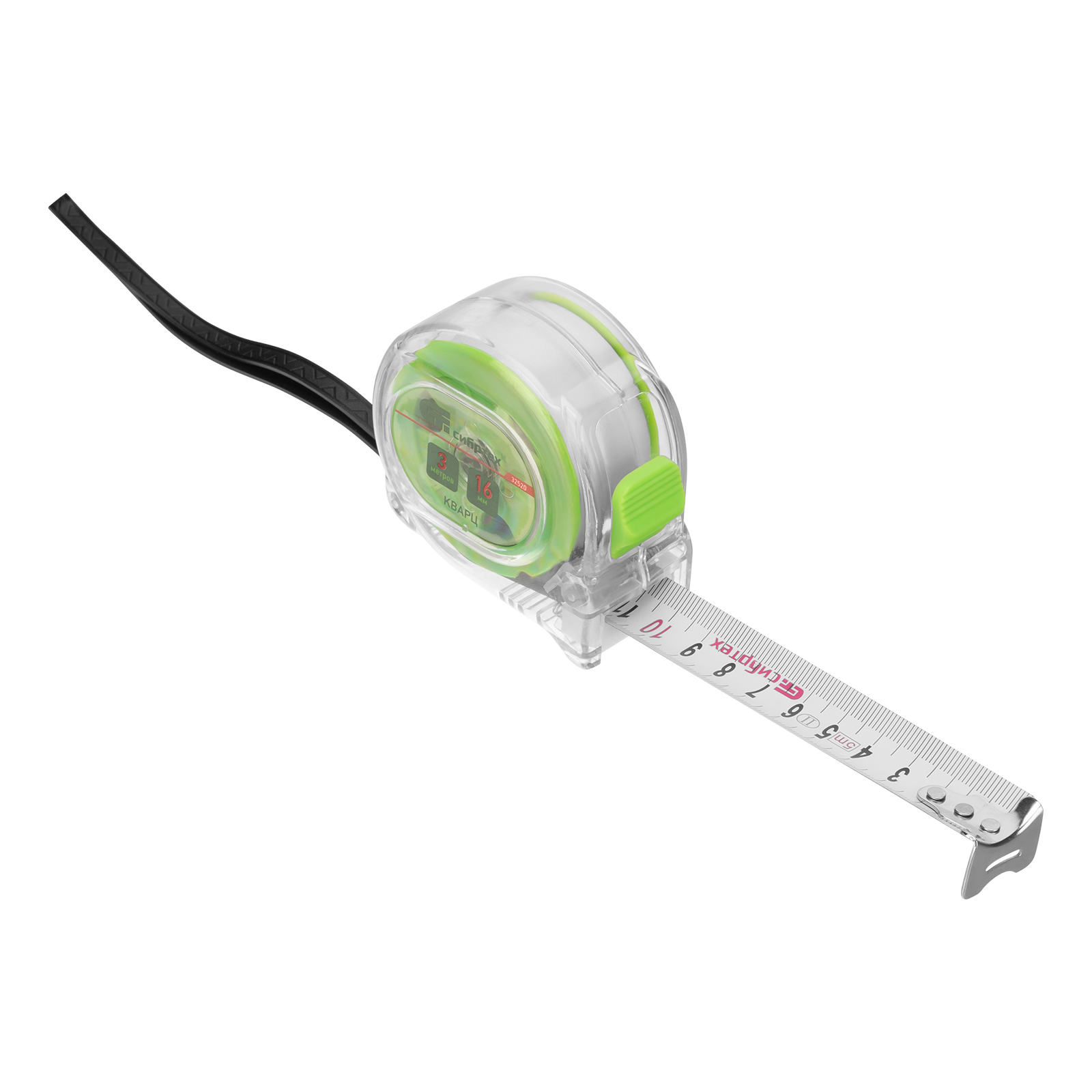 Рулетка Кварц,прозрачный корпус,амортизатор,3 м х 16 мм Сибртех в Санкт-Петербурге