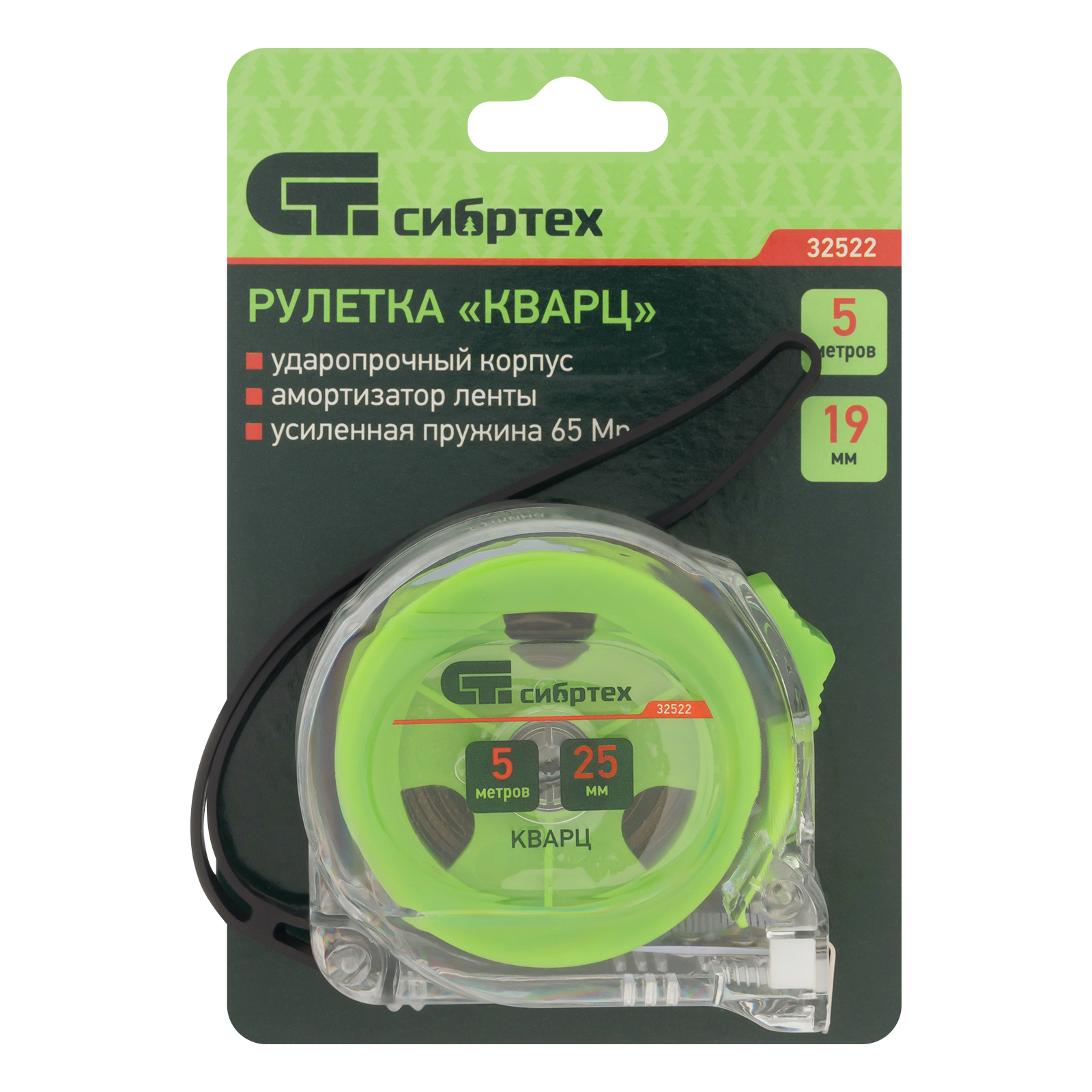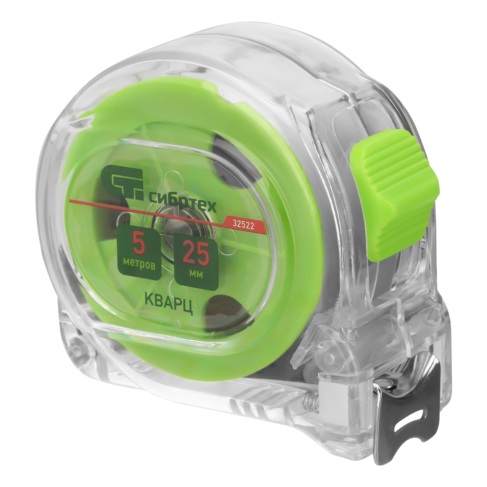 Рулетка Кварц,прозрачный корпус,амортизатор,5 м х 25 мм Сибртех в Санкт-Петербурге
