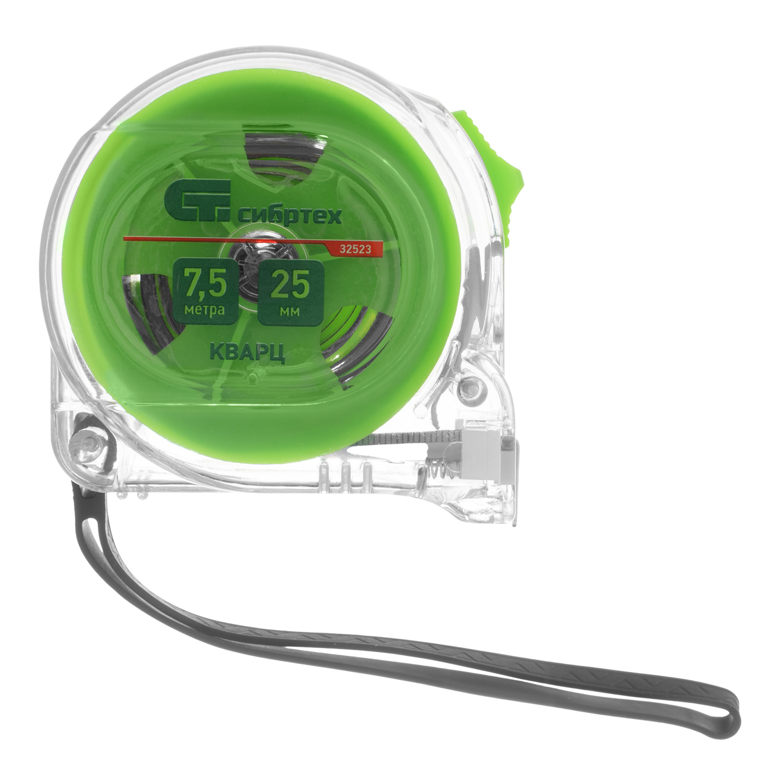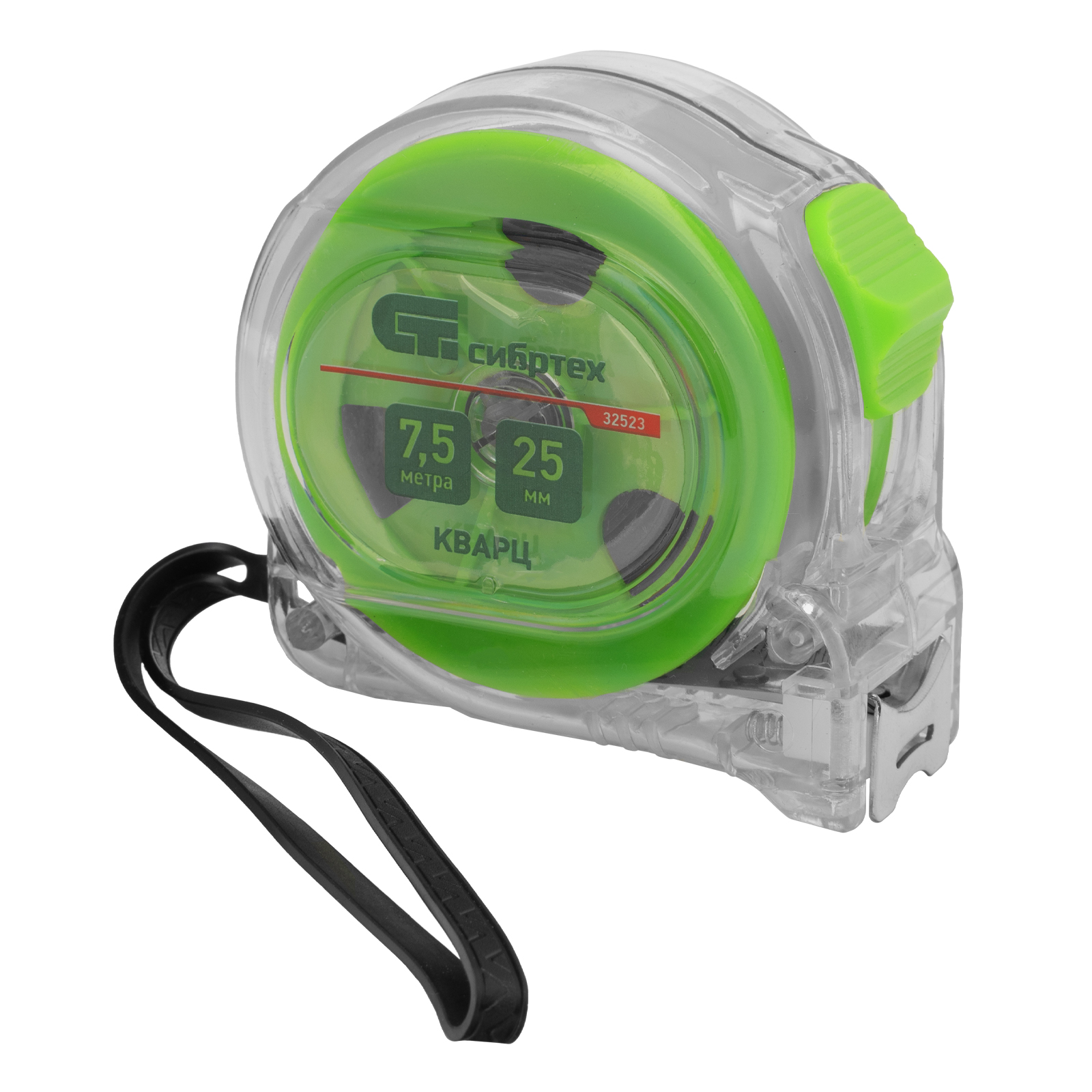 Рулетка Кварц,прозрачный корпус,амортизатор,7,5 м х 25 мм Сибртех в Санкт-Петербурге