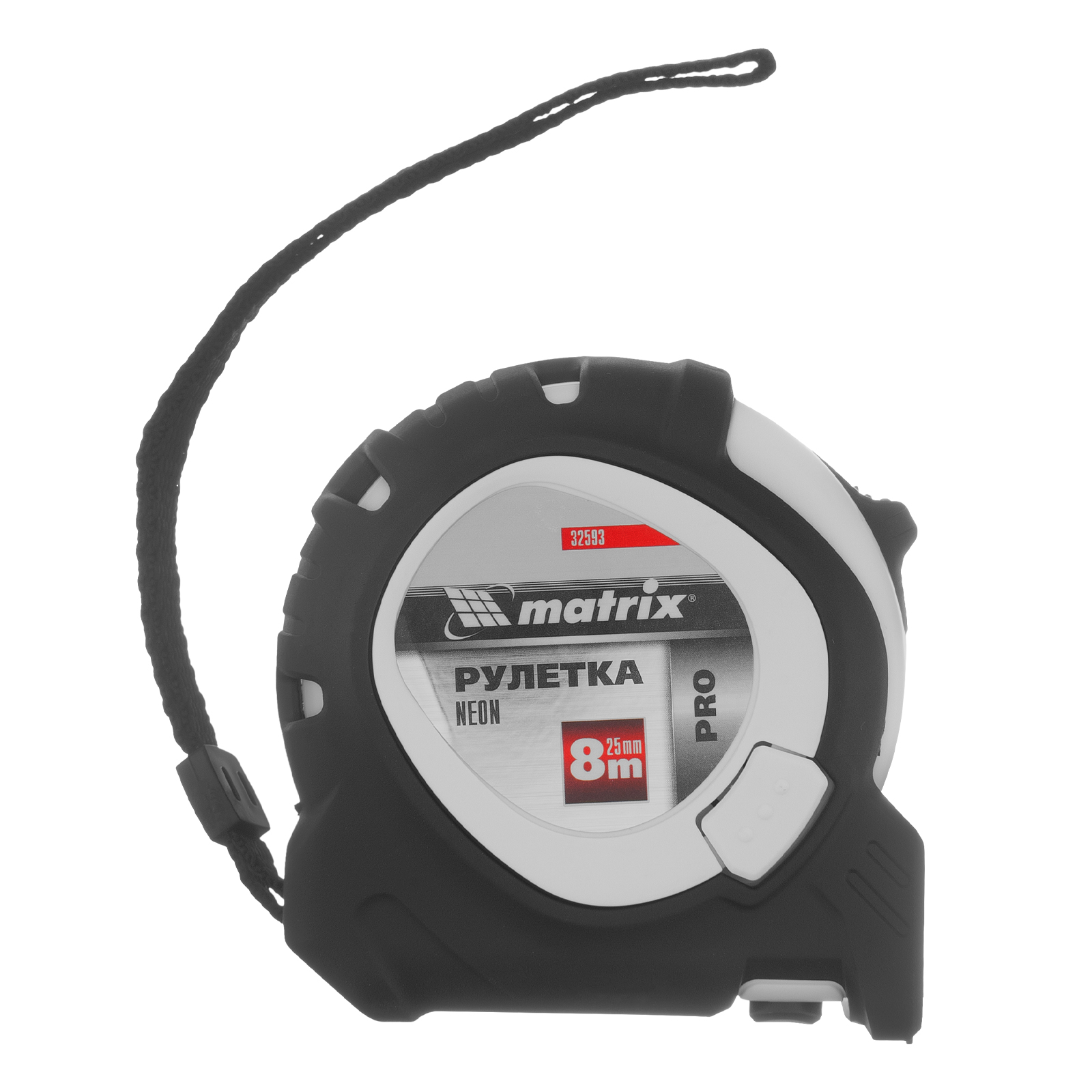 Рулетка Neon,8 м x 25 мм,обрезиненный корпус,3 фиксации,Pro Matrix в Санкт-Петербурге