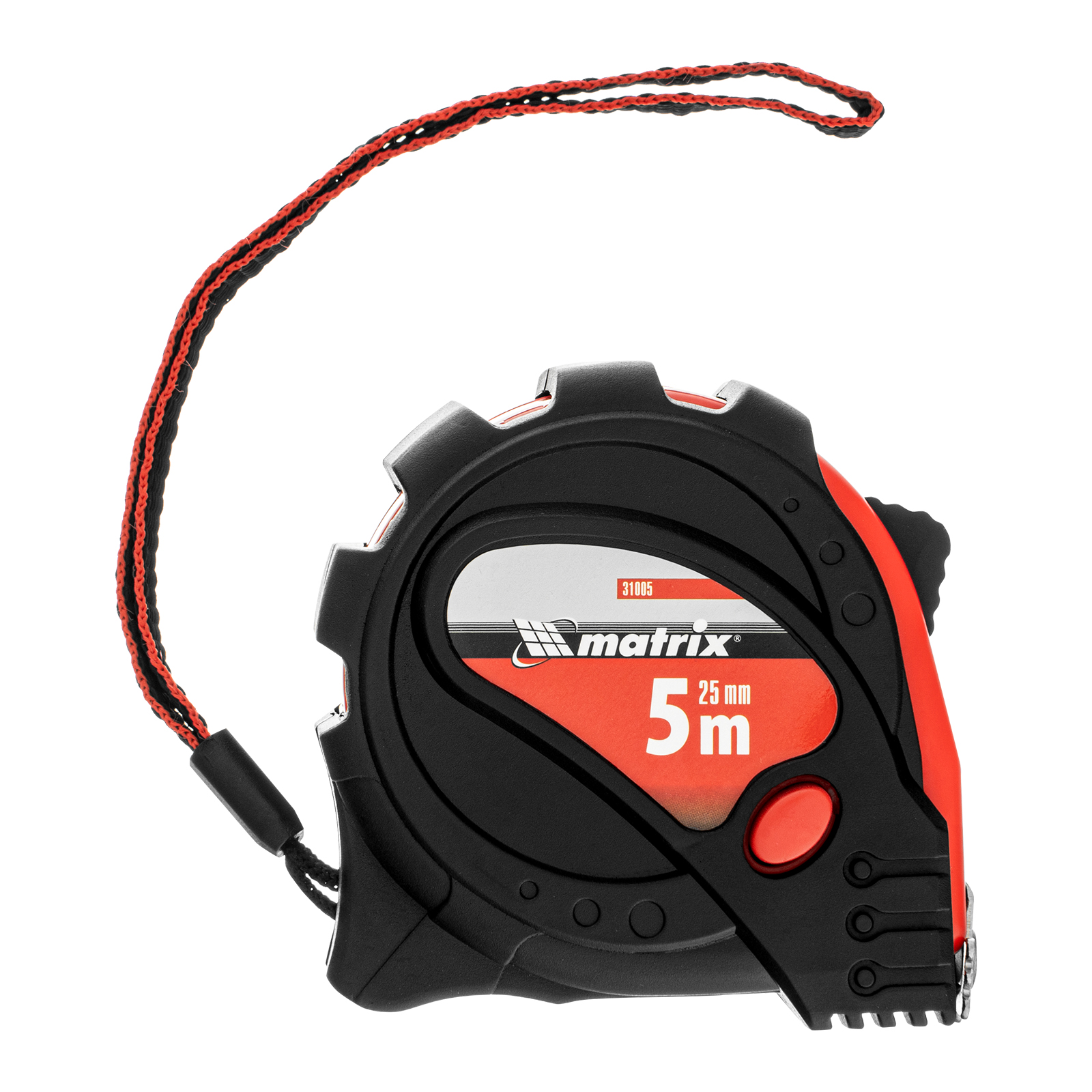 Рулетка Matrix Status magnet 3 fixations 31005 с полотном длиной 5 м и шириной 25 мм, в обрезиненном корпусе, оснащенная зацепом с магнитом, предназначена для измерения различных объектов и расстояний. Имеет класс точности 2 и цену деления 1 мм, что обеспечивает достаточную результативность замеров. Магнитный зацеп позволяет четко фиксировать измерительное полотно на металлических предметах. Стальная лента шириной 25 мм обладает большой упругостью, что облегчает работу в труднодоступных местах. Рулетка будет полезна при проведении строительных работ, а также пригодится в быту.