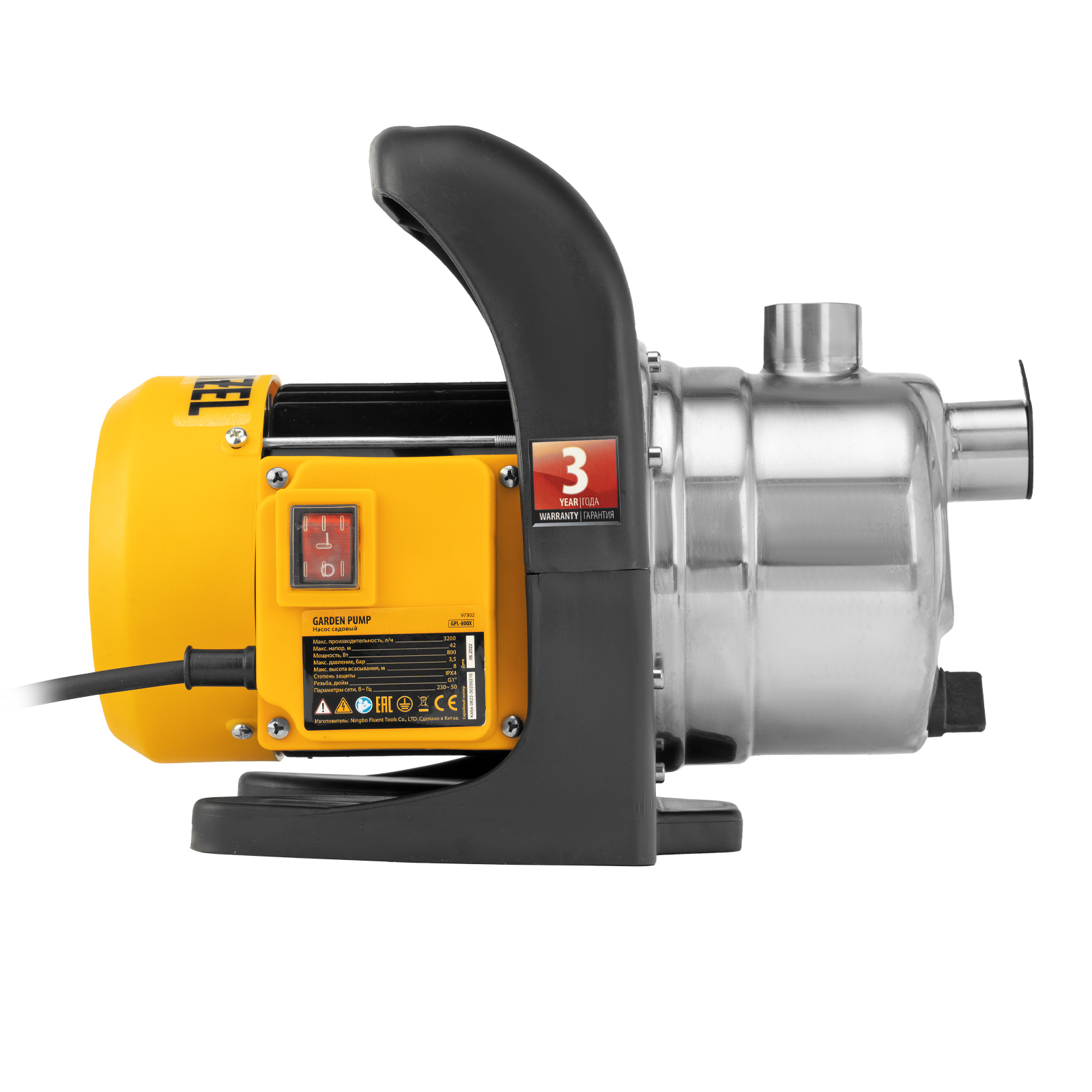 Садовый поверхностный насос GPL800Х, 800 Вт, 3200 л/ч, подъем 42 м, нержавейка Denzel