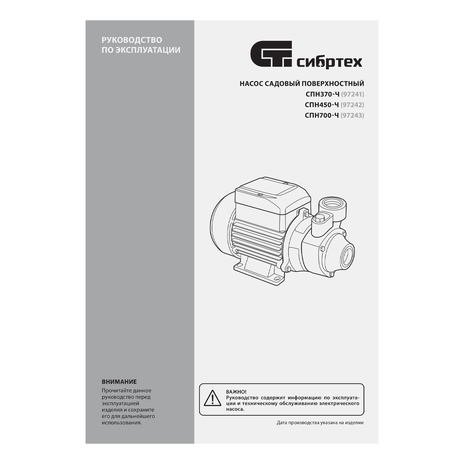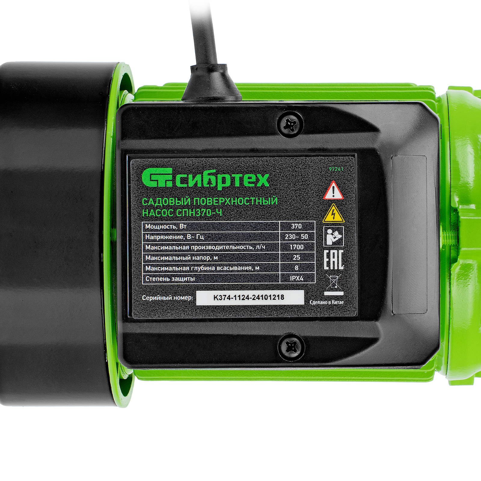 Садовый поверхностный насос СПН370-Ч, 370 Вт, напор 25 м, 1700 л/ч, чугун Сибртех в Санкт-Петербурге