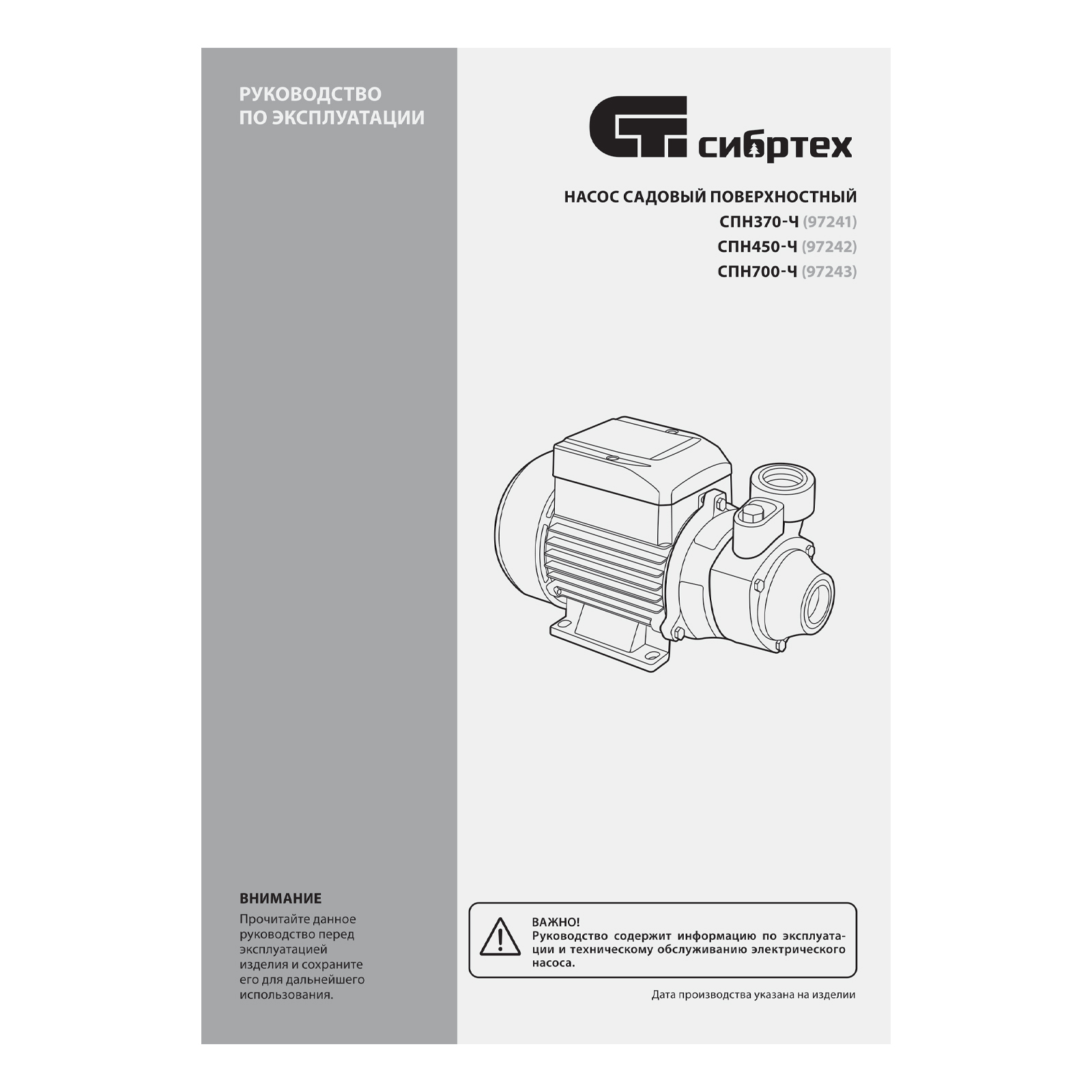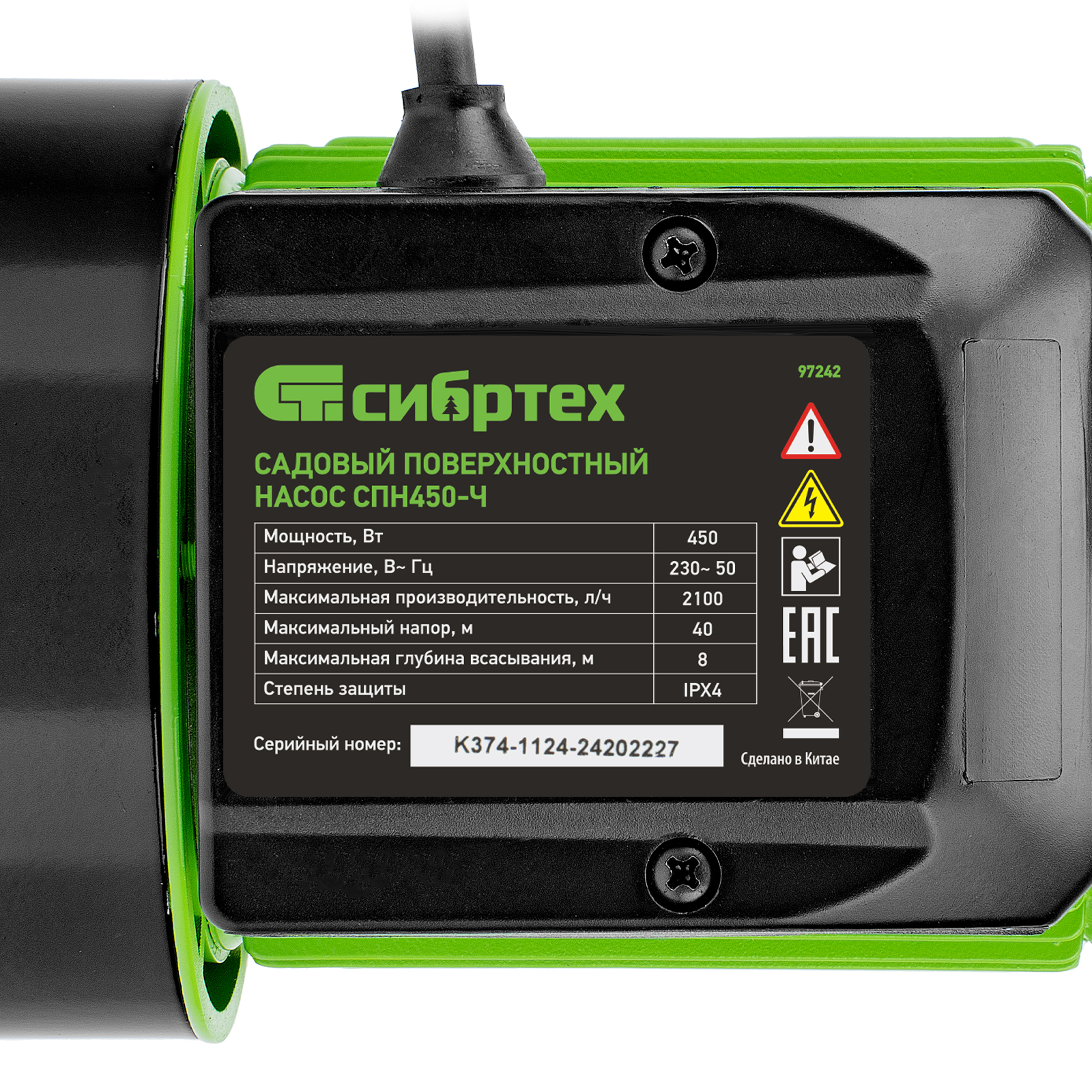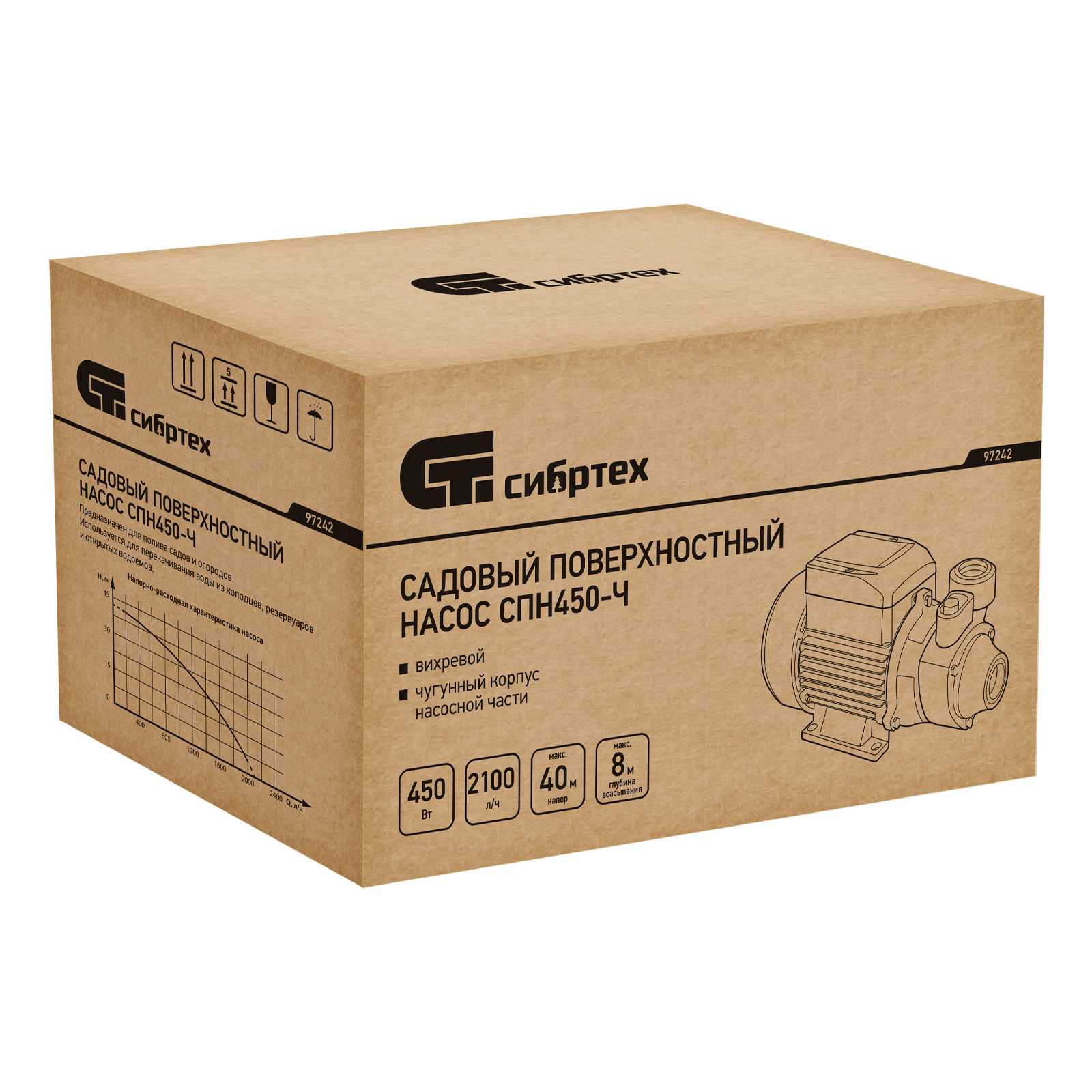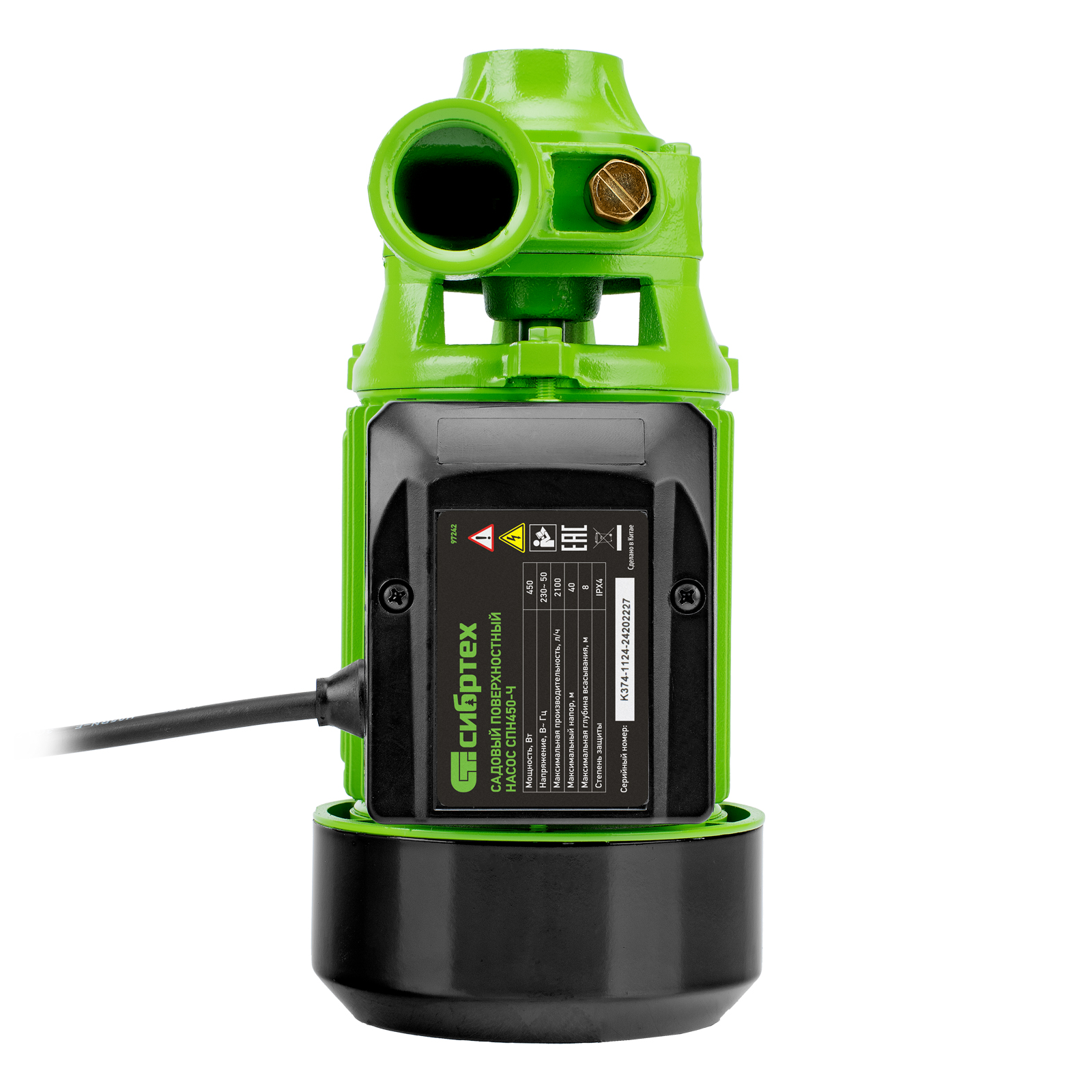 Садовый поверхностный насос СПН450-Ч, 450 Вт, напор 40 м, 2100 л/ч, чугун Сибртех в Санкт-Петербурге