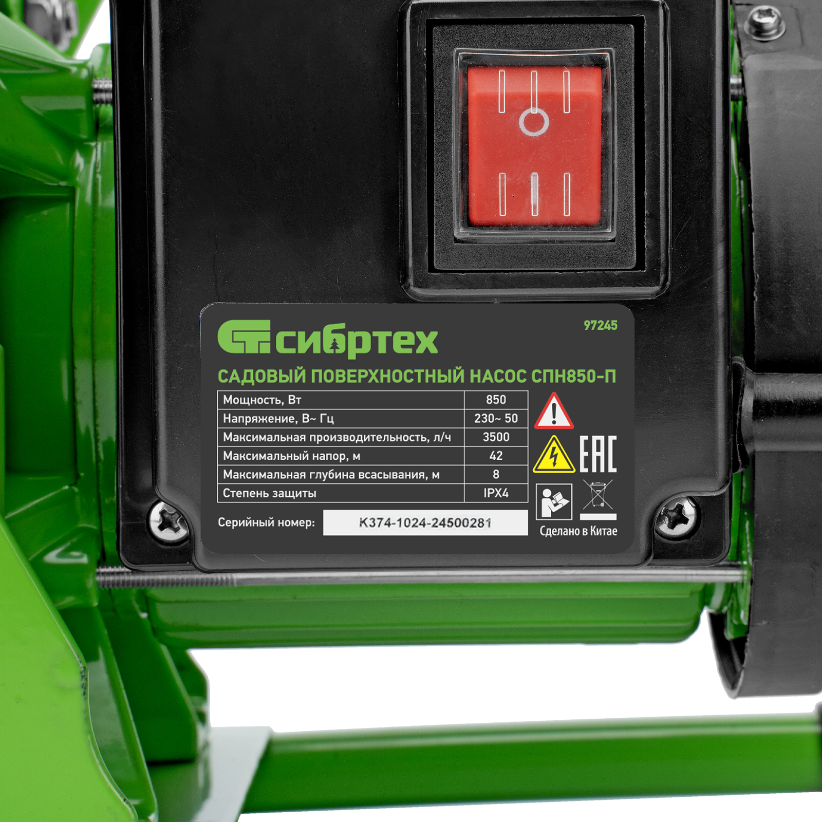 Садовый поверхностный насос СПН850-П, 850 Вт, напор 42 м, 3500 л/ч, пластик Сибртех в Санкт-Петербурге