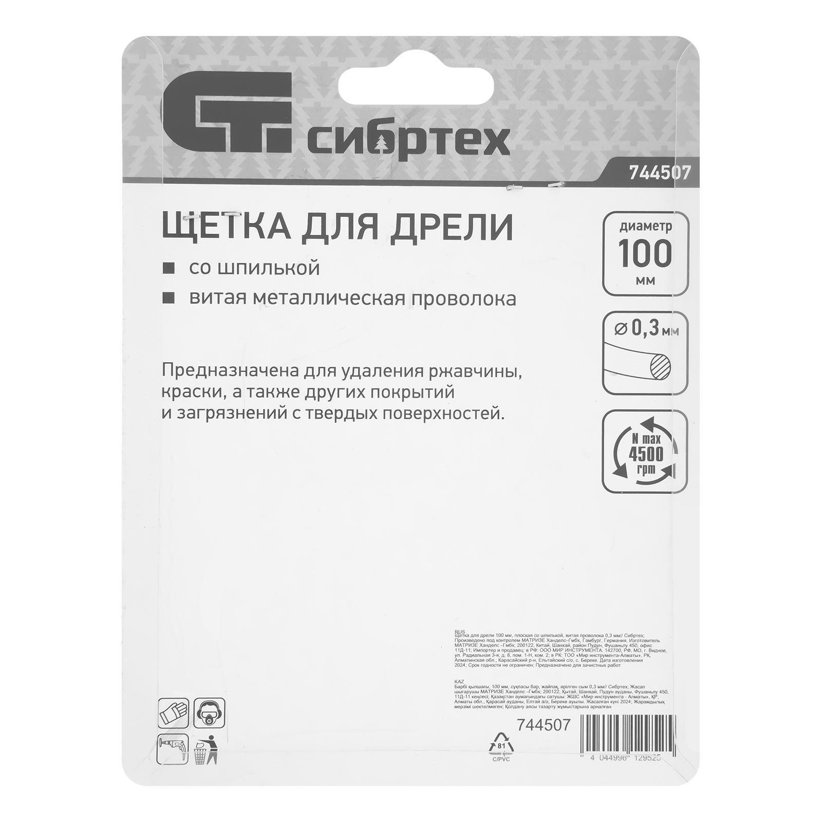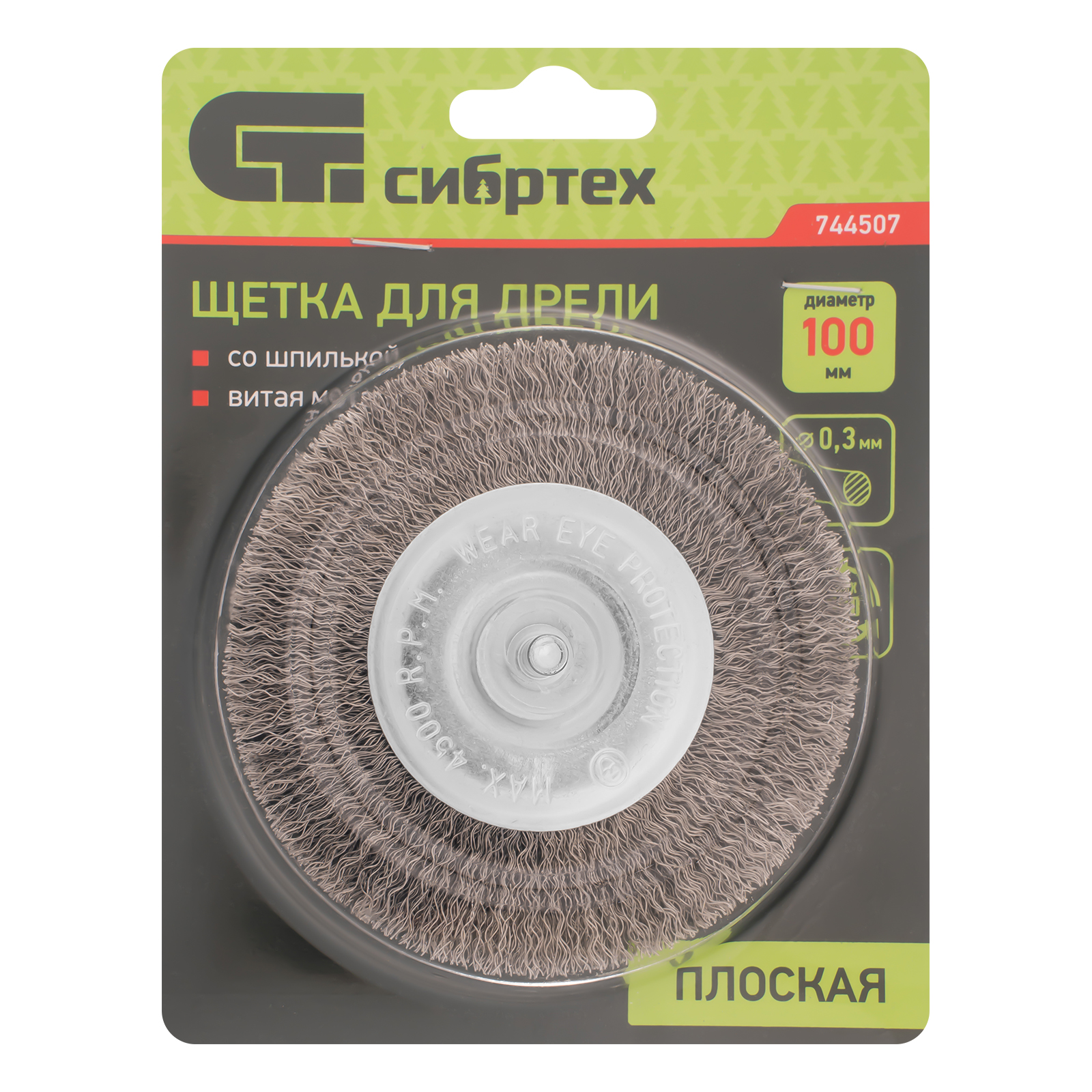 Щетка для дрели 100 мм, плоская со шпилькой, витая проволока Сибртех в Санкт-Петербурге