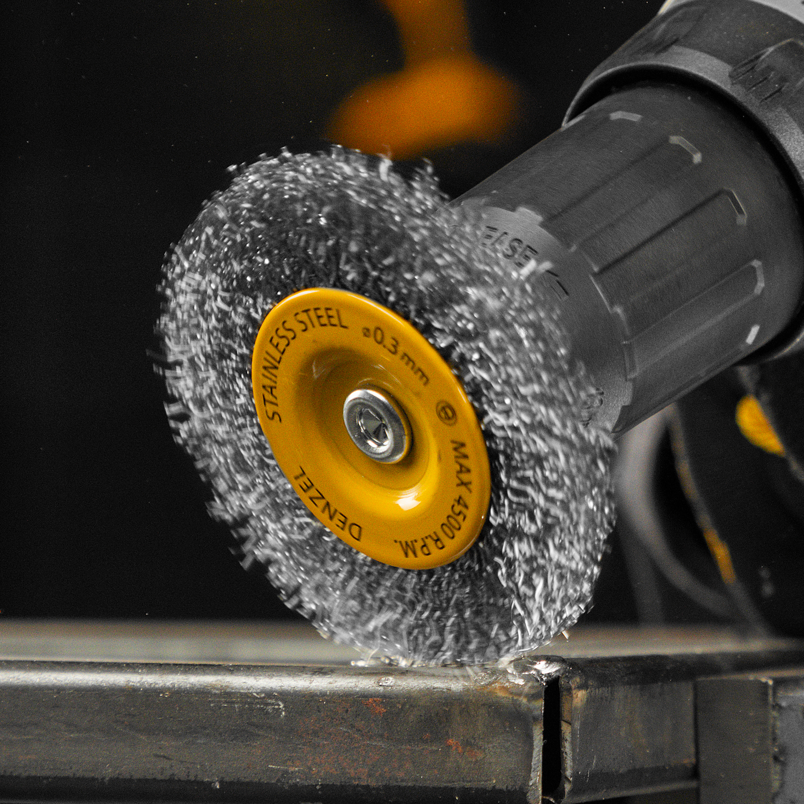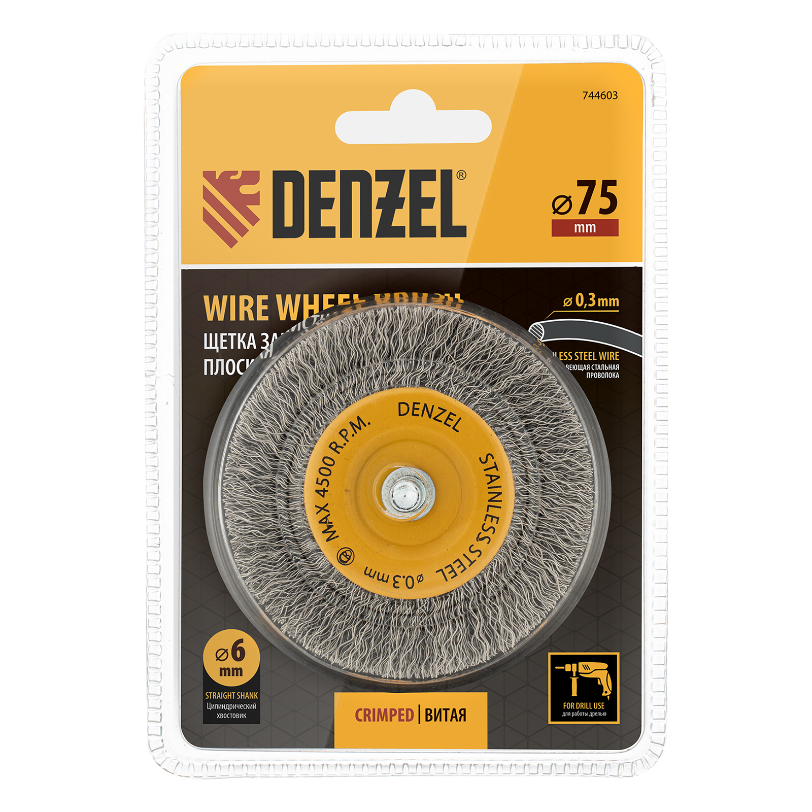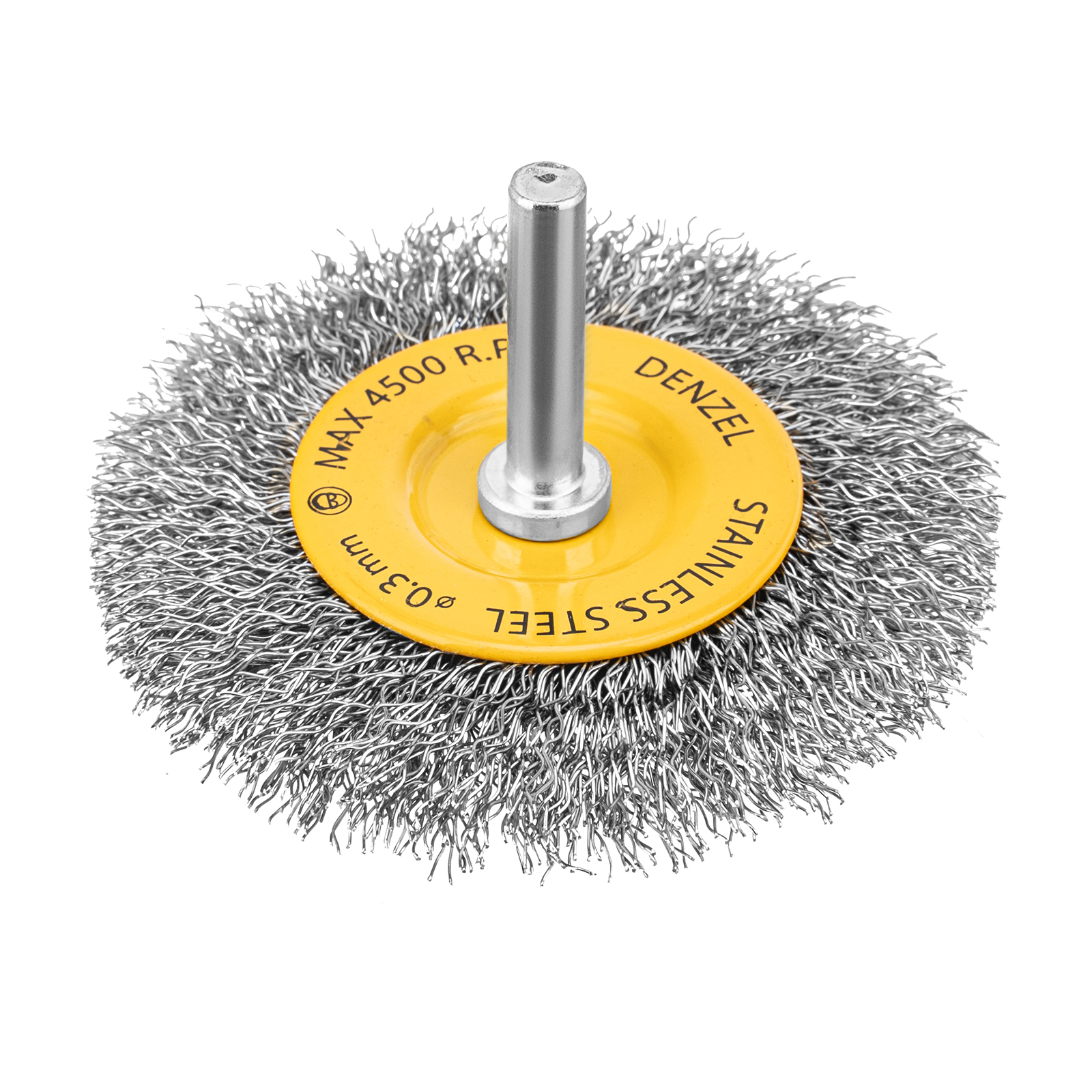 Щетка для дрели, 75 мм, Плоская, со шпилькой, нержавеющая витая проволока Denzel в Санкт-Петербурге