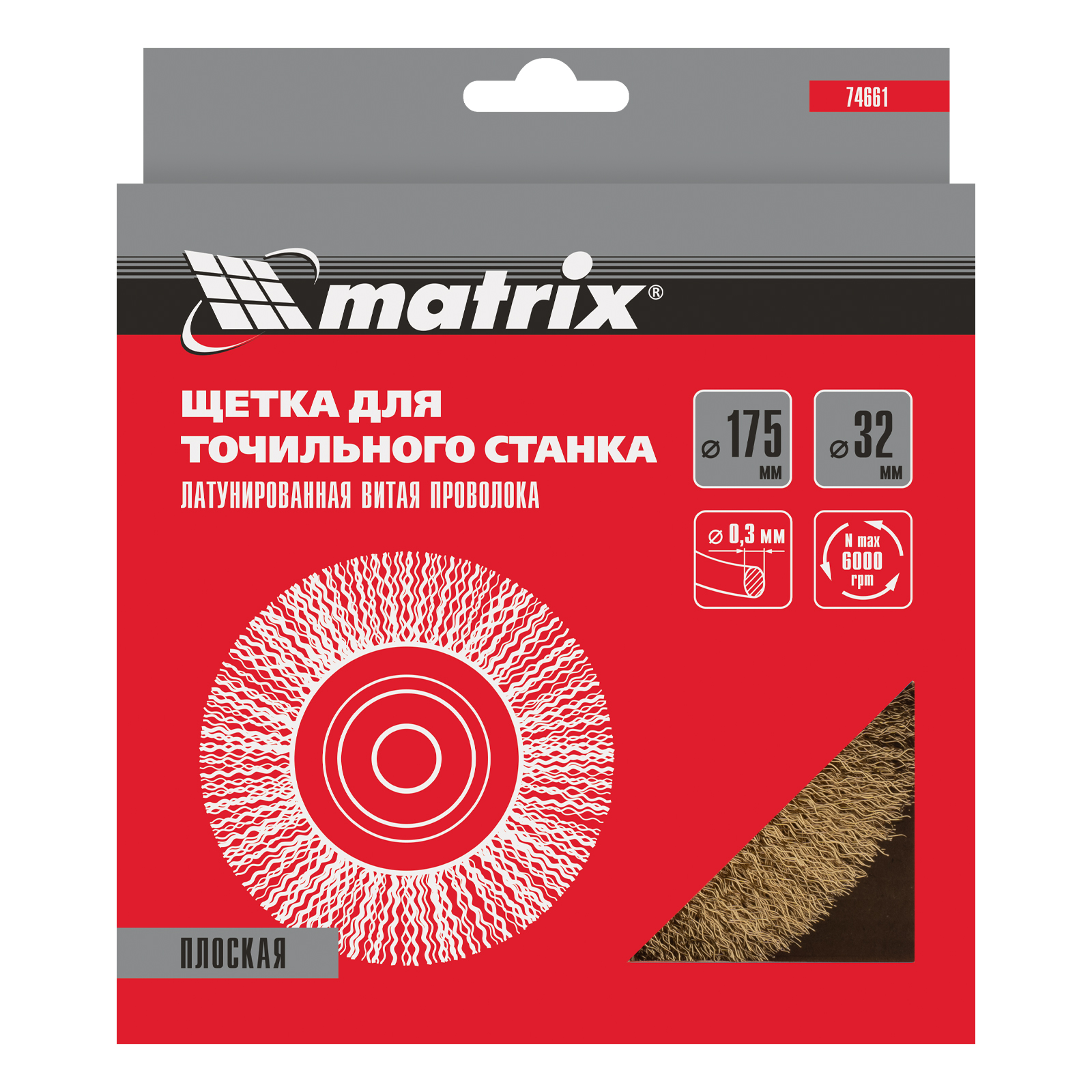 Плоская щетка Matrix 74661 диаметром 175 мм, с щетиной из латунированной витой проволоки, устанавливается на точило с посадочным размером 32 мм. Рекомендуемая скорость вращения — не более 6000 об/мин. Витая проволока позволяет в щадящем режиме зачистить тонкий слой ржавчины и лакокрасочных покрытий, удалить различные загрязнения с небольших или хрупких деталей. Благодаря плоской форме щетка подходит для обработки труднодоступных мест.