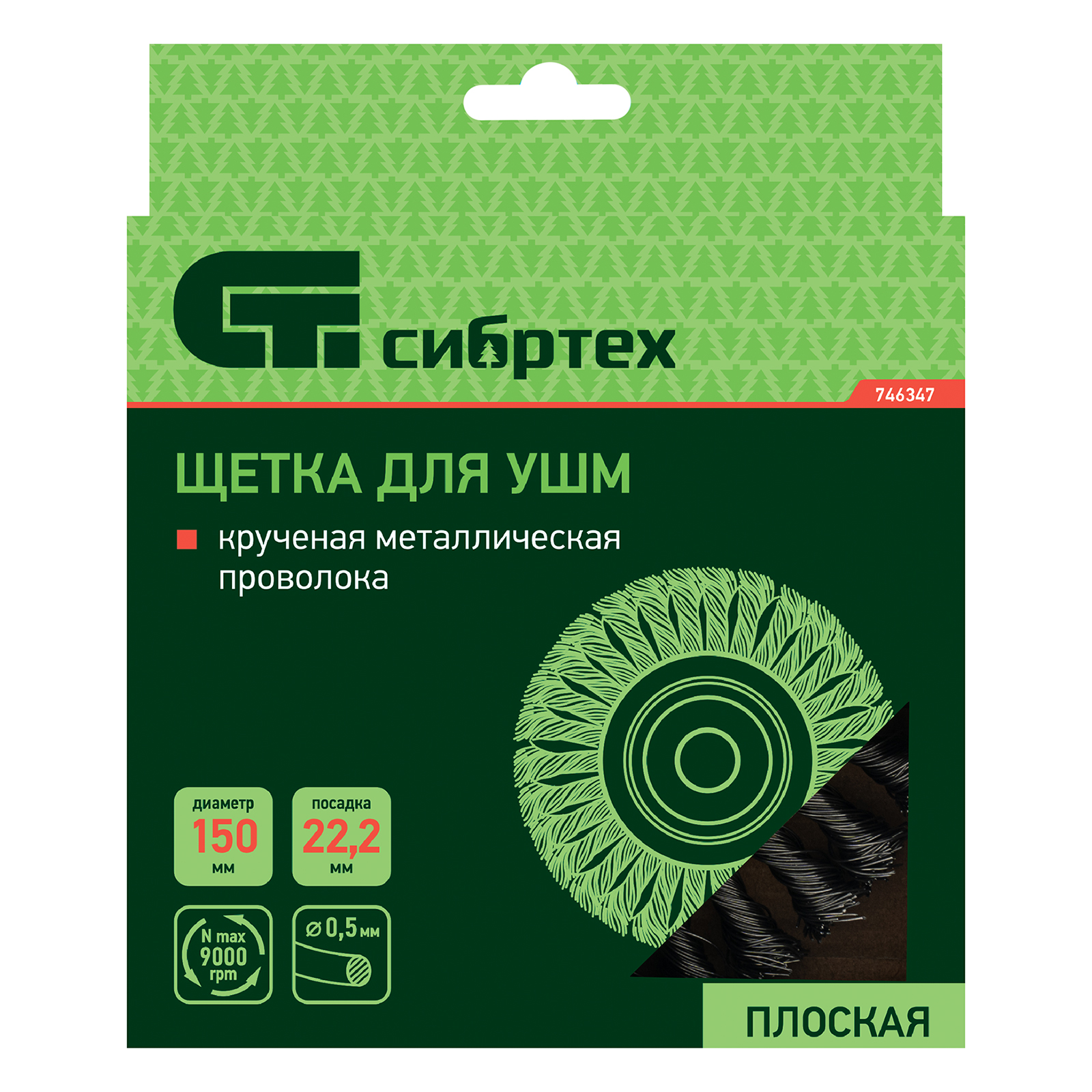 Щетка для УШМ 150 мм, посадка 22.2 мм, плоская, крученая металлическая проволока Сибртех в Санкт-Петербурге