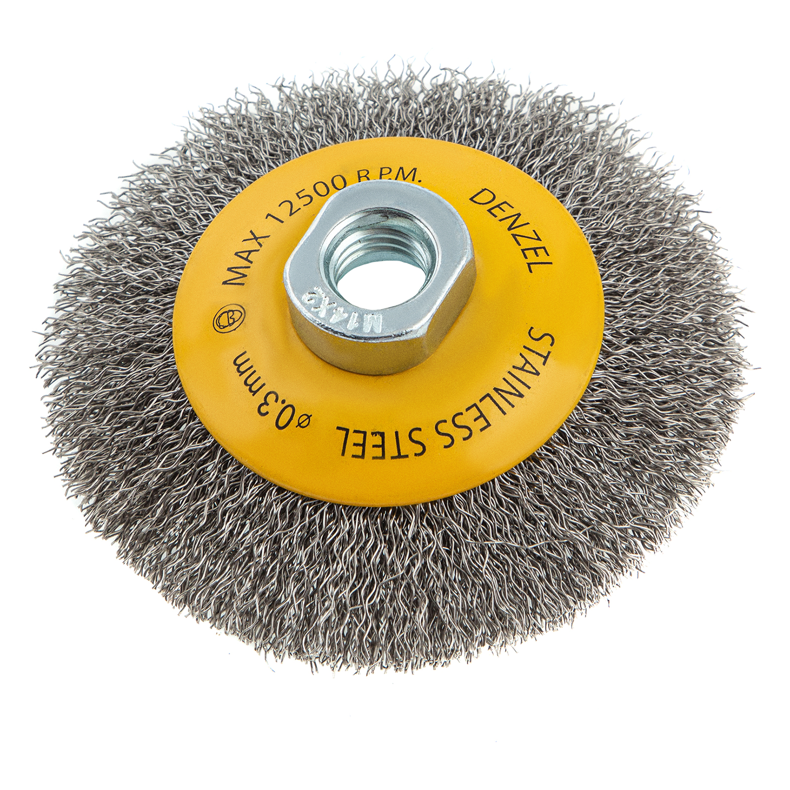 Щетка для УШМ, 100 мм, "Тарелка", витая нержавеющая проволока 0.3 мм, М14 Denzel в Санкт-Петербурге