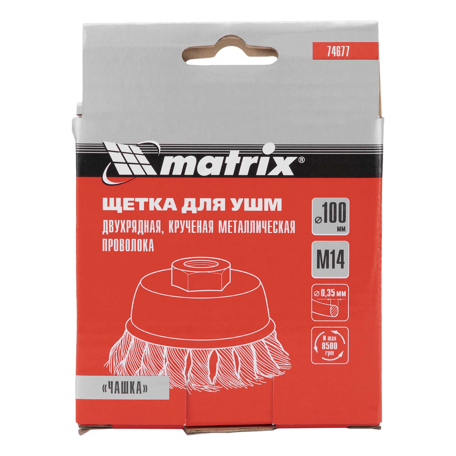 Щетка для УШМ, 100 мм, М14, "чашка", двухрядная, крученая проволока 0.35 мм Matrix