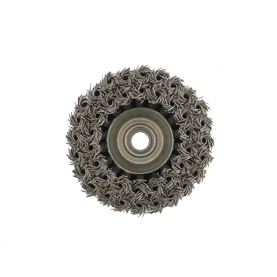 Двухрядная щетка Matrix «Чашка» 74687 диаметром 100 мм, с щетиной из крученой проволоки толщиной 0,8 мм, устанавливается на вал углошлифовальной машины с помощью гайки М14. Рекомендованная максимальная скорость вращения — до 8500 об/мин. Оснастка оптимальна для грубой (черновой) обработки: снятия старого слоя лакокрасочного покрытия и ржавчины, удаления загрязнений, зачистки сварных швов. Эффективно справляется с зачисткой больших поверхностей, подходит для выполнения работ повышенной сложности.