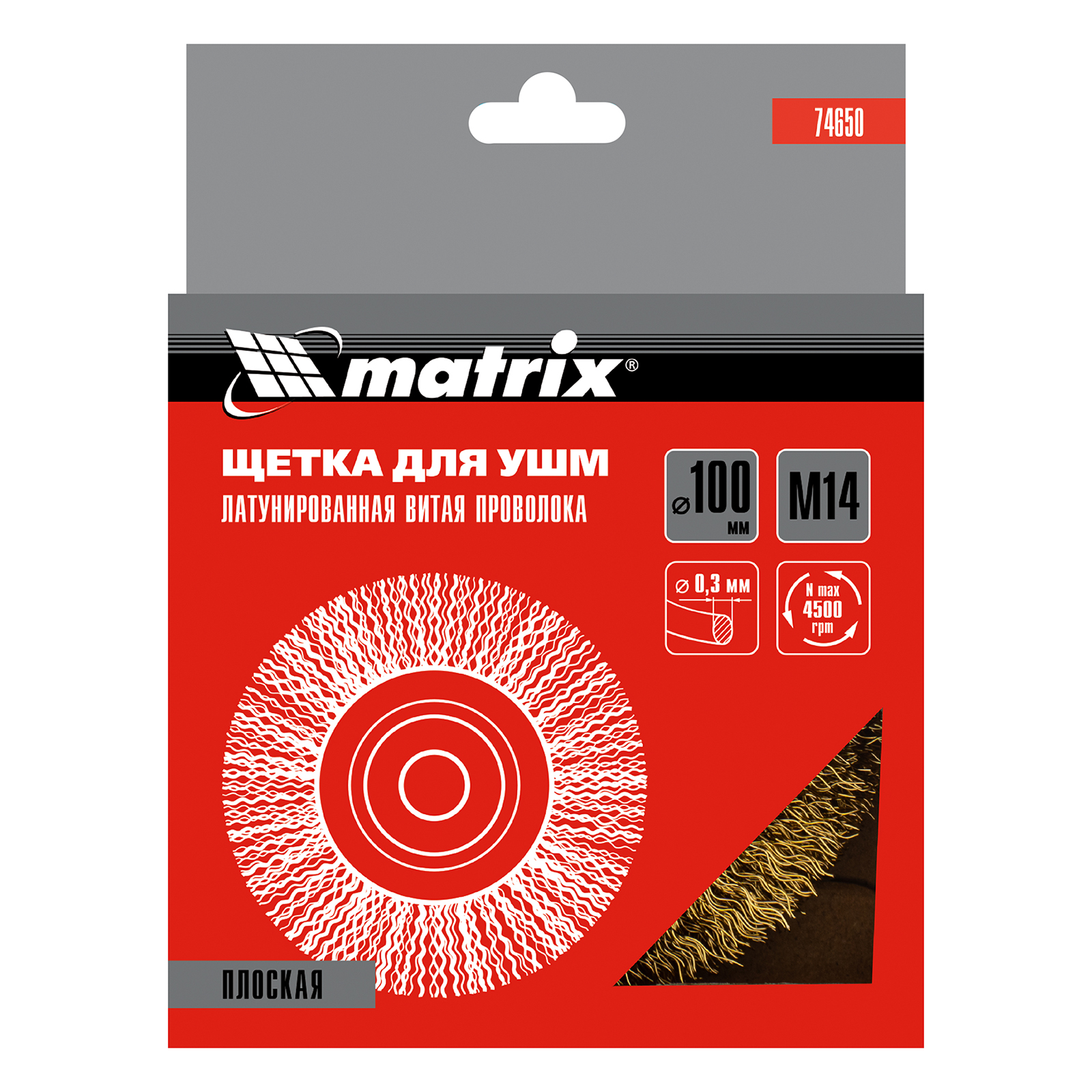 Щетка для УШМ, 100 мм, М14, плоская, латунированная витая проволока Matrix в Санкт-Петербурге