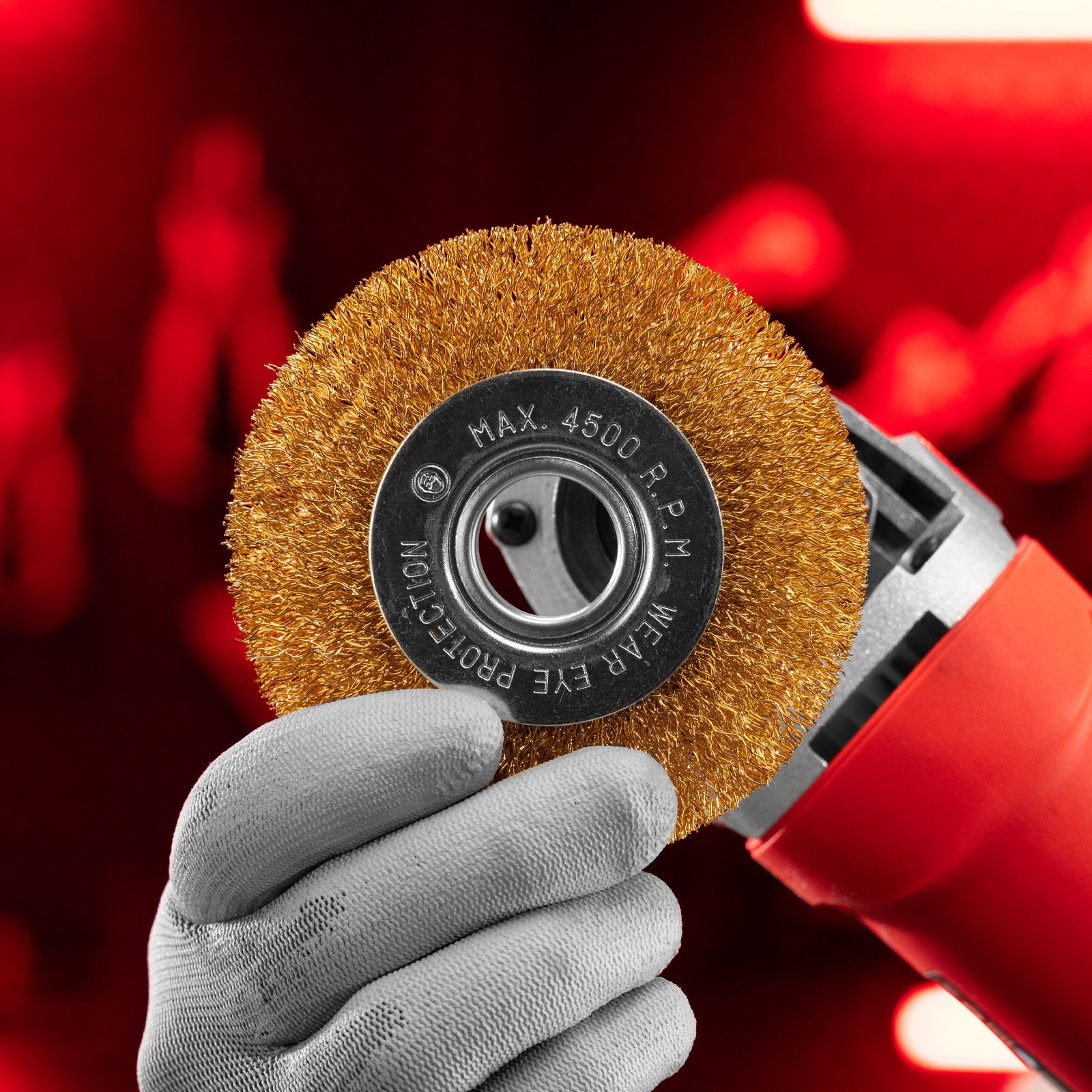 Щетка для УШМ, 100 мм, посадка 22.2 мм, плоская, латунированная витая проволока Matrix в Санкт-Петербурге