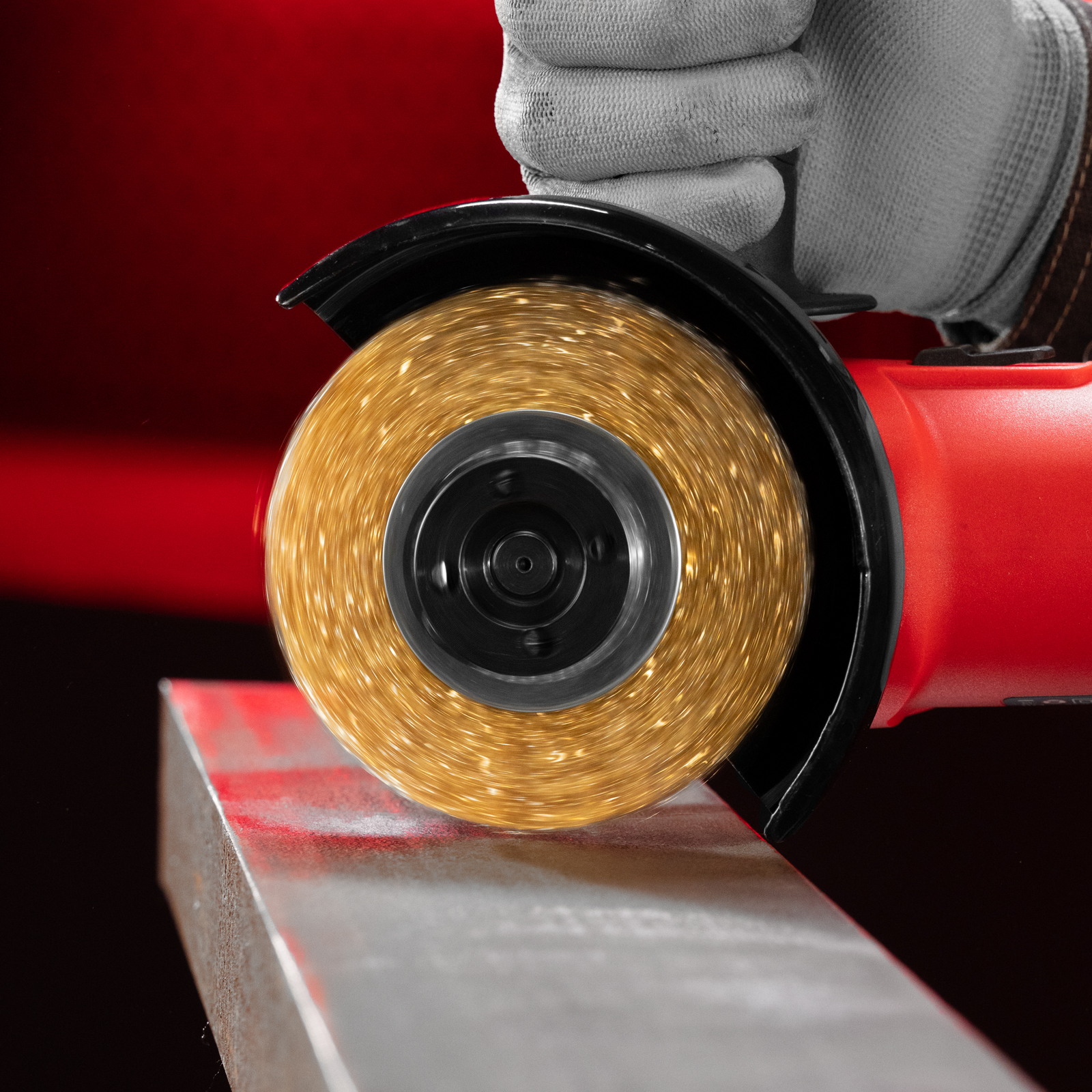 Плоская щетка для УШМ Matrix 74648 диаметром 100 мм, с щетиной из латунированной витой проволоки, посадкой 22,2 мм, предназначена для щадящей обработки поверхностей. Устанавливается на вал УШМ, поддерживающей скорость вращения не более 4500 об/мин. За счет плоской формы эффективно удаляет загрязнения, ржавчину и лакокрасочные покрытия в труднодоступных местах: углах и изгибах.