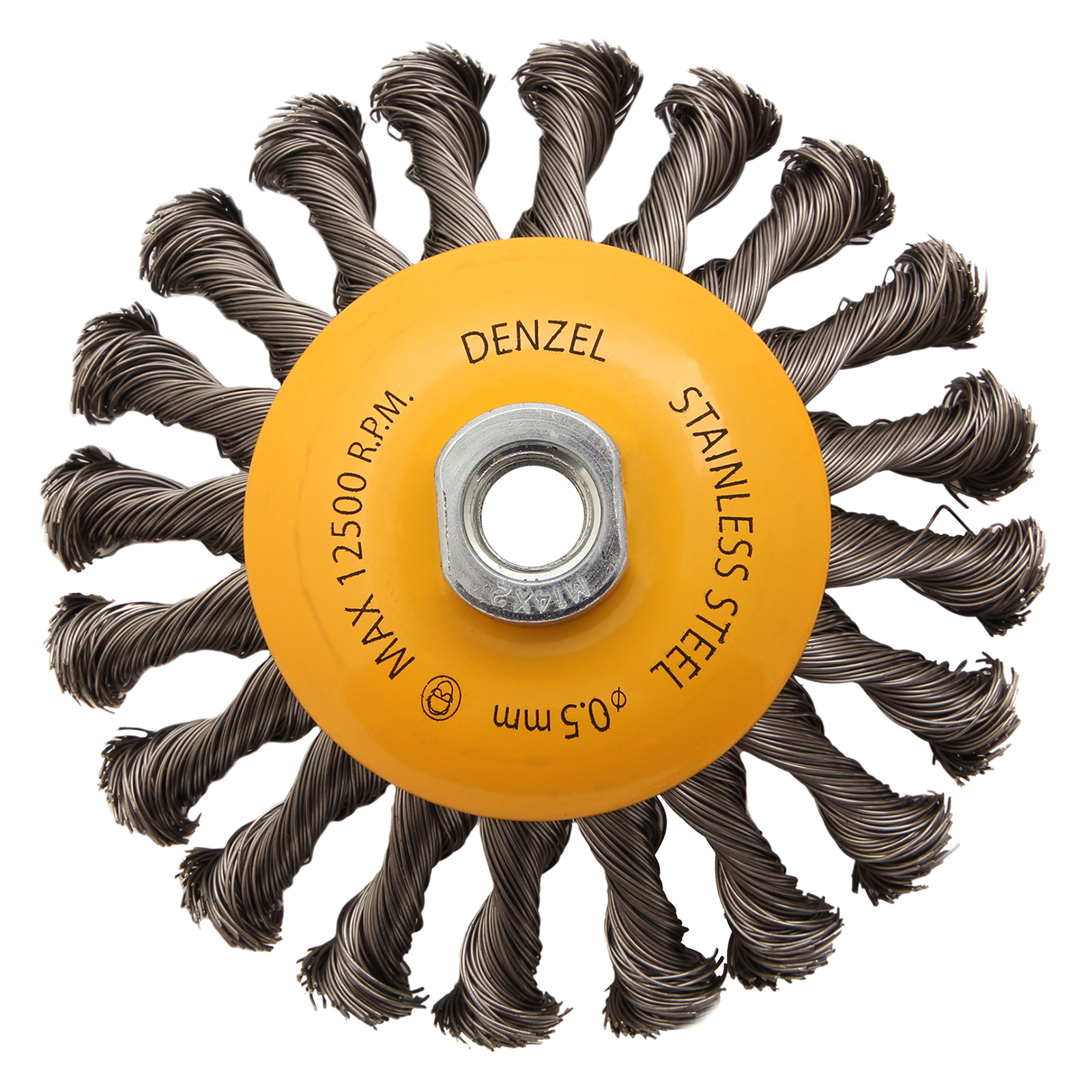 Щетка для УШМ, 125 мм, "Тарелка", крученая нержавеющая проволока 0.5 мм, М14 Denzel в Санкт-Петербурге