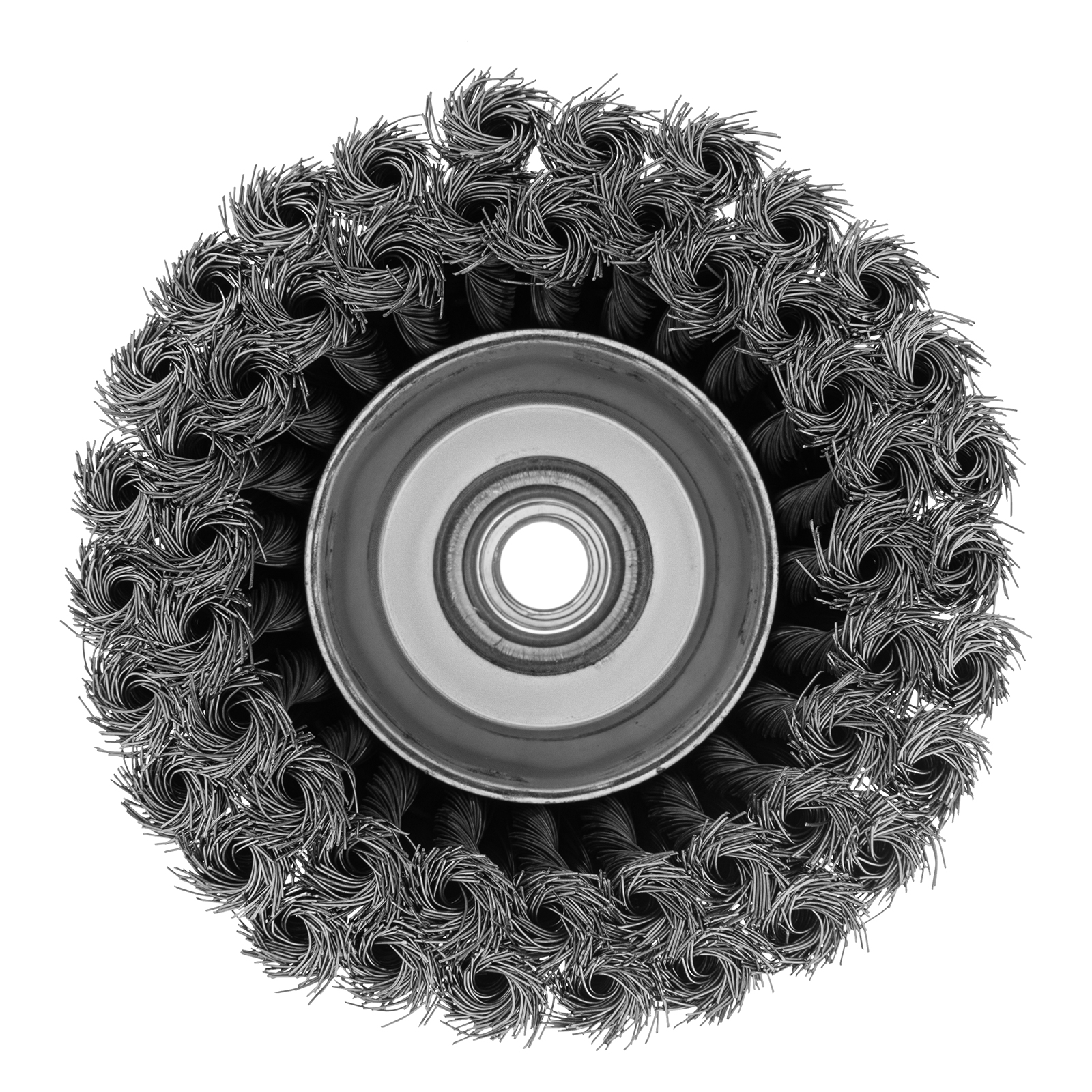Двухрядная щетка Matrix «Чашка» 74678 диаметром 125 мм, с щетиной из крученой проволоки толщиной 0,35 мм, устанавливается на вал углошлифовальной машины с помощью гайки М14. Рекомендованная максимальная скорость вращения — до 6500 об/мин. Оснастка оптимальна для грубой (черновой) обработки: снятия старого слоя лакокрасочного покрытия и ржавчины, удаления загрязнений, зачистки сварных швов. Эффективно справляется с зачисткой больших поверхностей, подходит для выполнения работ повышенной сложности.