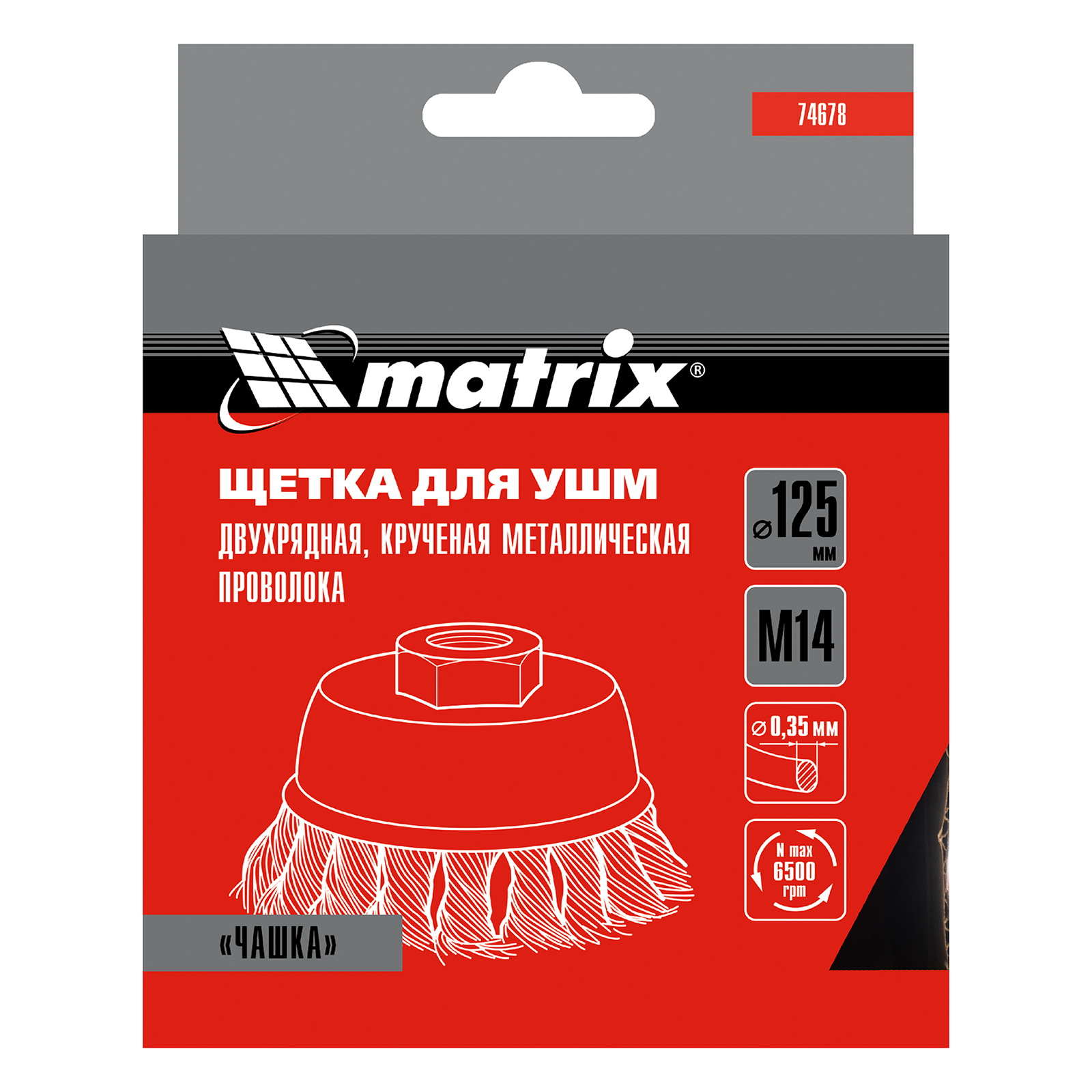Щетка для УШМ, 125 мм, М14, "чашка", двухрядная, крученая проволока 0.35 мм Matrix