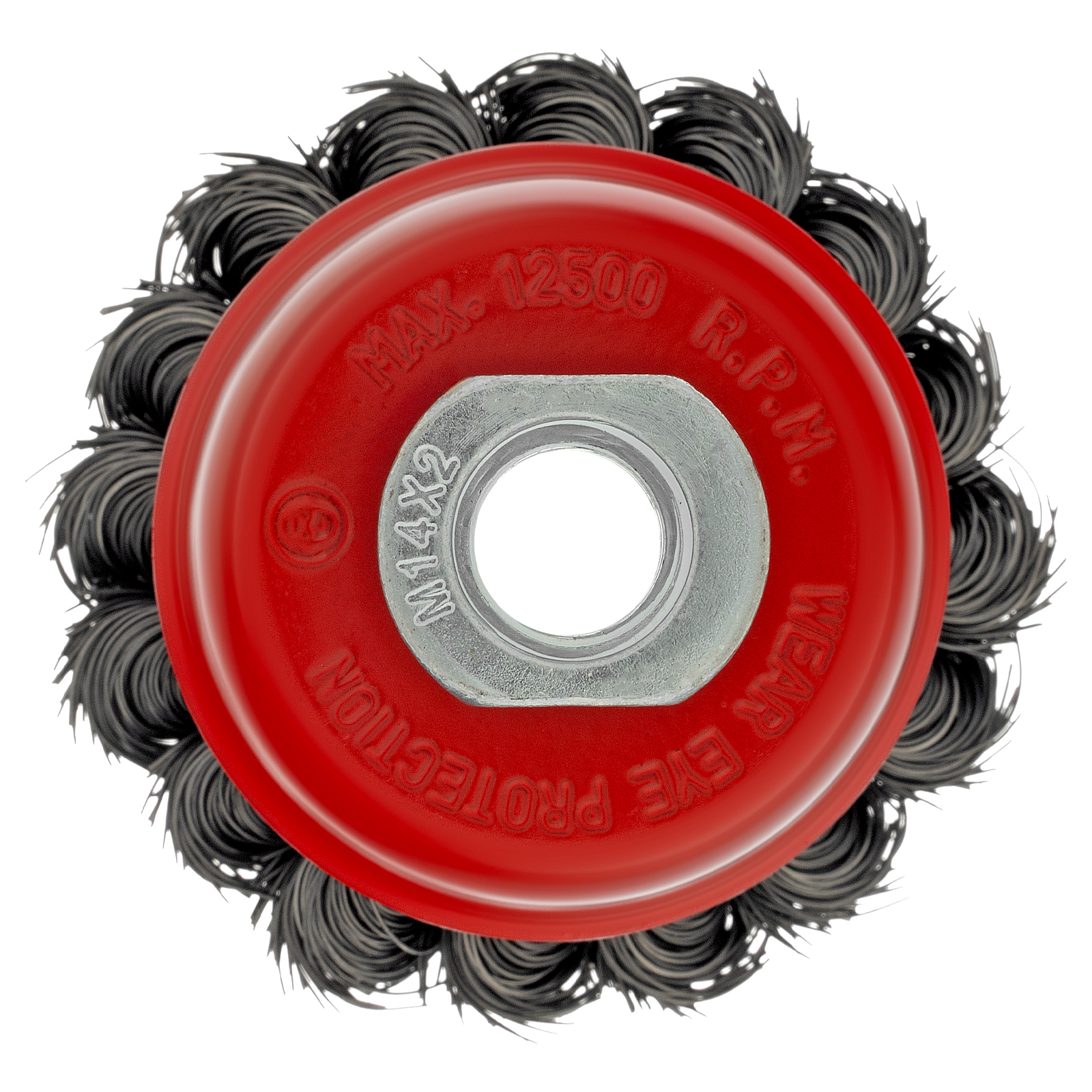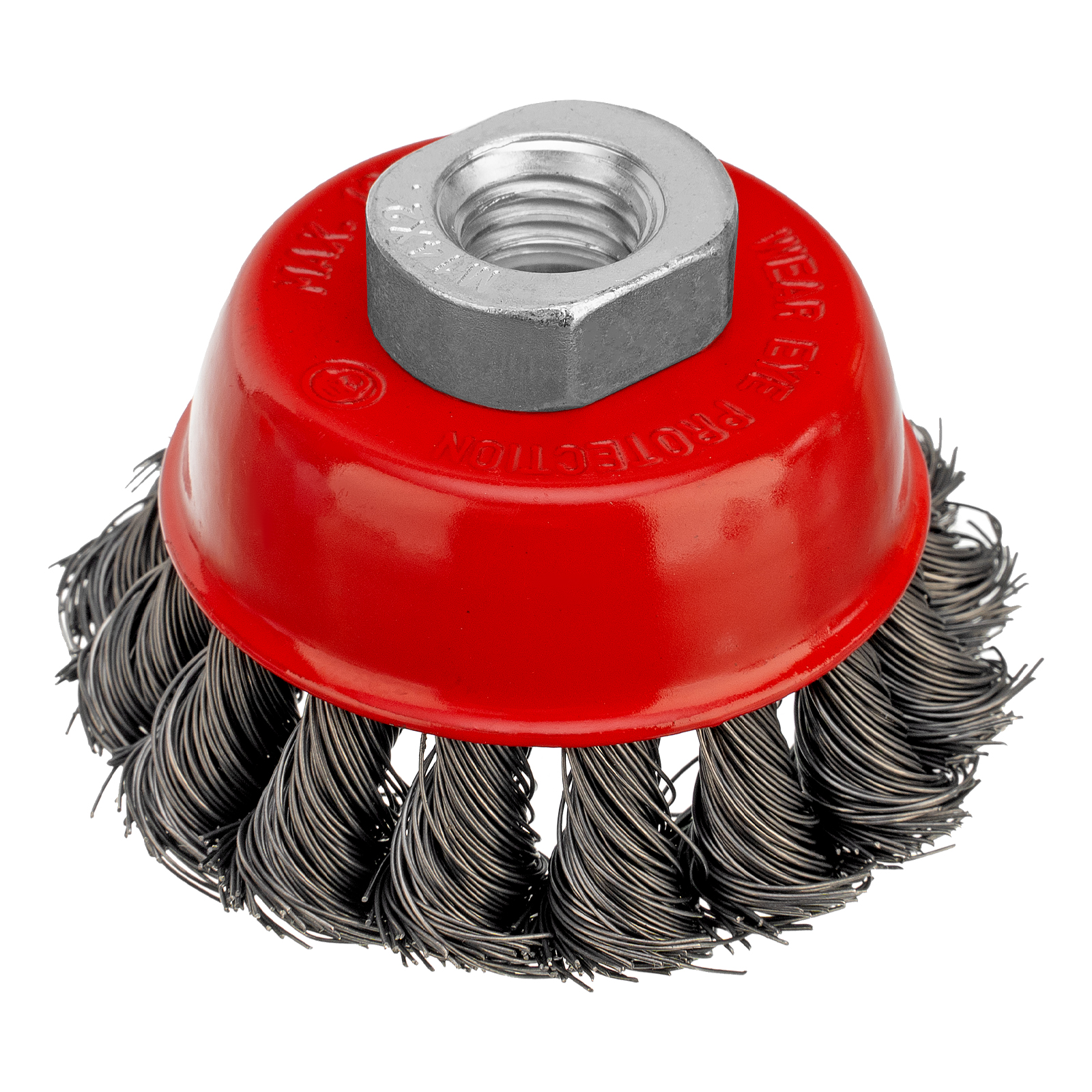Щетка Matrix «Чашка» 74613 диаметром 65 мм, с присоединительной резьбой М14, с щетиной из крученой проволоки диаметром 0,35 мм, устанавливается на УШМ, поддерживающую работу со скоростью 12500 об/мин. Щетина предназначена для грубой (черновой) обработки поверхностей, менее агрессивной по сравнению с щетиной 0,5 мм. Изделие подходит для удаления загрязнений, снятия толстого слоя ржавчины, ЛКМ, зачистки сварных швов.