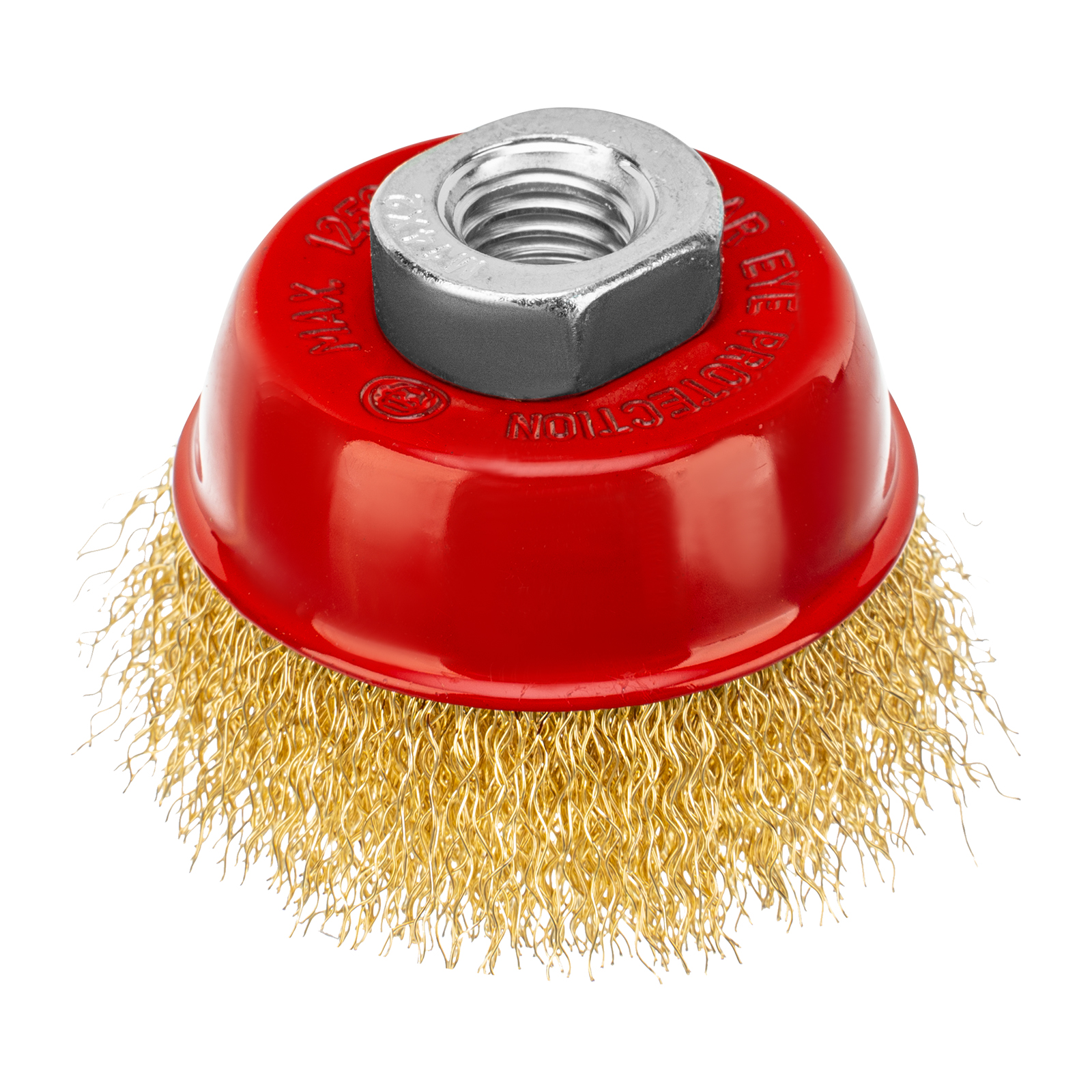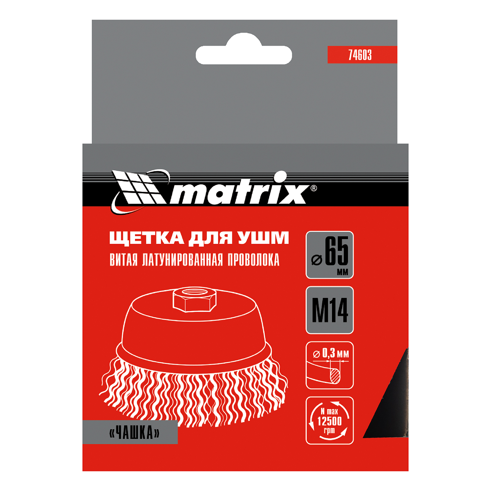 Щетка «чашка» Matrix 74603 диаметром 65 мм, с щетиной из латунированной витой проволоки, устанавливается на вал УШМ с помощью гайки М14. Предназначена для снятия тонкого слоя краски или лака, удаления ржавчины и загрязнений. При рекомендованной скорости вращения 12500 об/мин щеткой можно быстро обрабатывать участки большой площади.