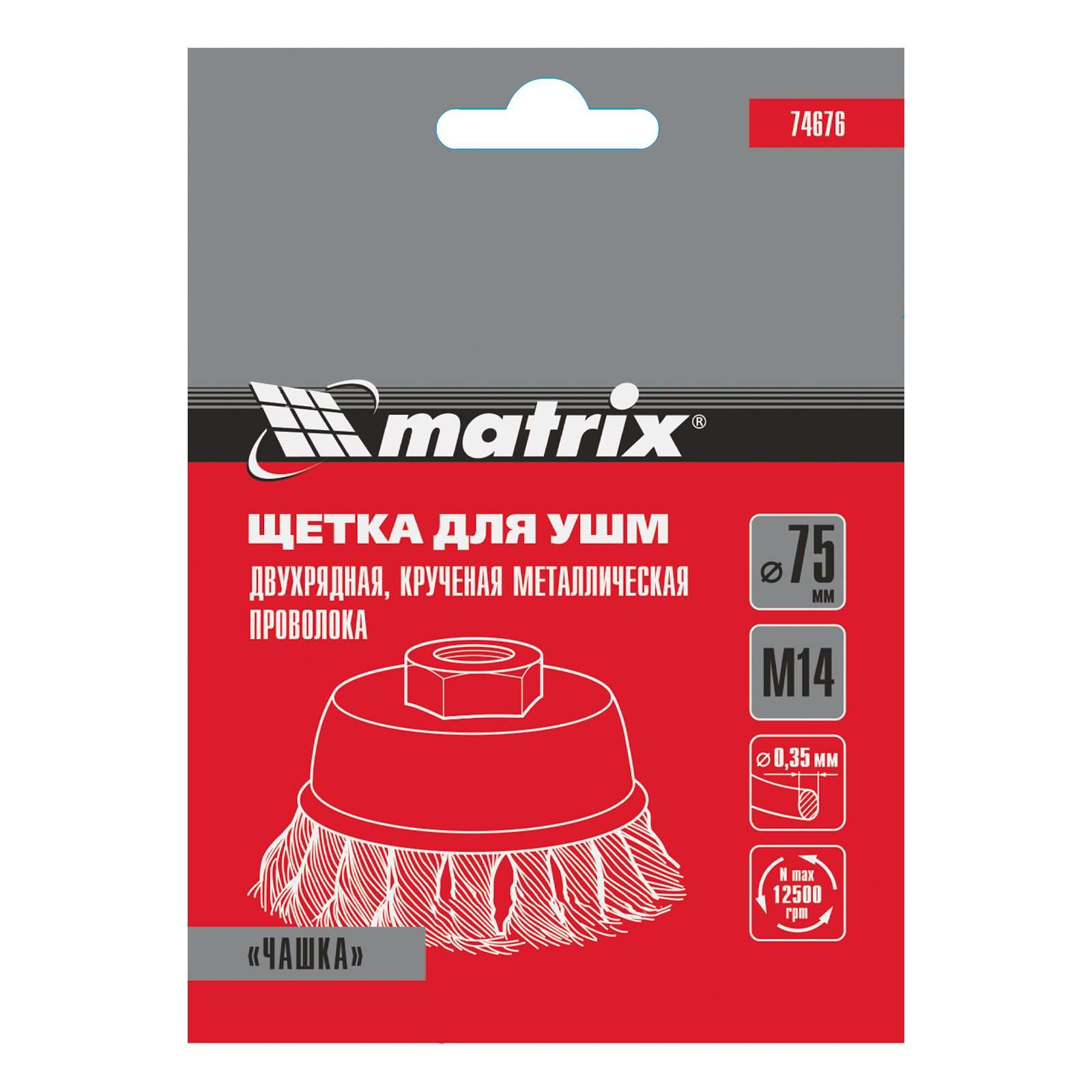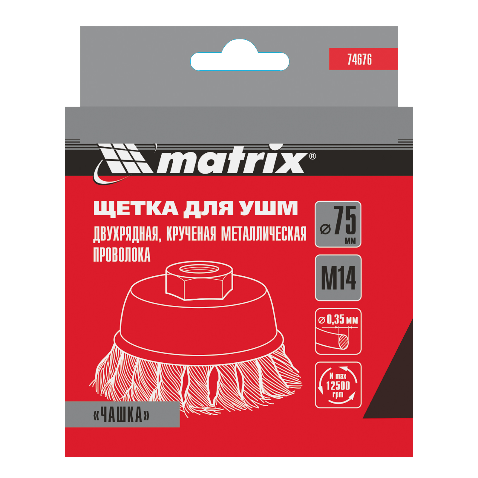 Двухрядная щетка Matrix «Чашка» 74676 диаметром 75 мм, с щетиной из крученой проволоки толщиной 0,35 мм, устанавливается на вал углошлифовальной машины с помощью гайки М14. Рекомендованная максимальная скорость вращения — до 12500 об/мин. Оснастка оптимальна для грубой (черновой) обработки: снятия старого слоя лакокрасочного покрытия и ржавчины, удаления загрязнений, зачистки сварных швов. Эффективно справляется с зачисткой больших поверхностей, подходит для выполнения работ повышенной сложности.