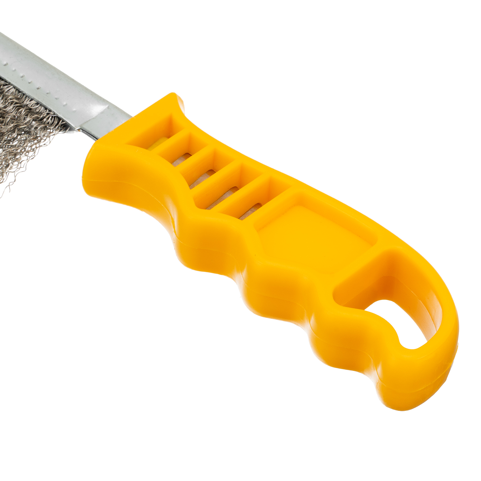 - Износостойкость — благодаря увеличенной плотности пучков щетина устойчива к истиранию, надежно закрепленная проволока не выпадает во время работы.