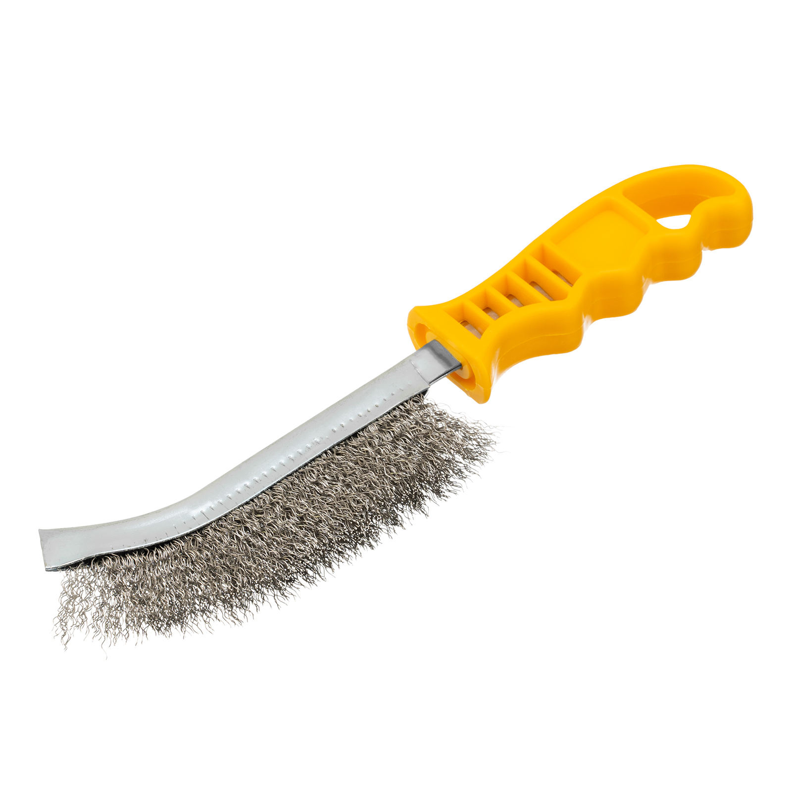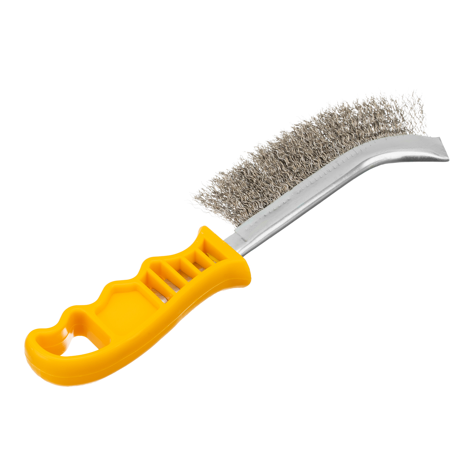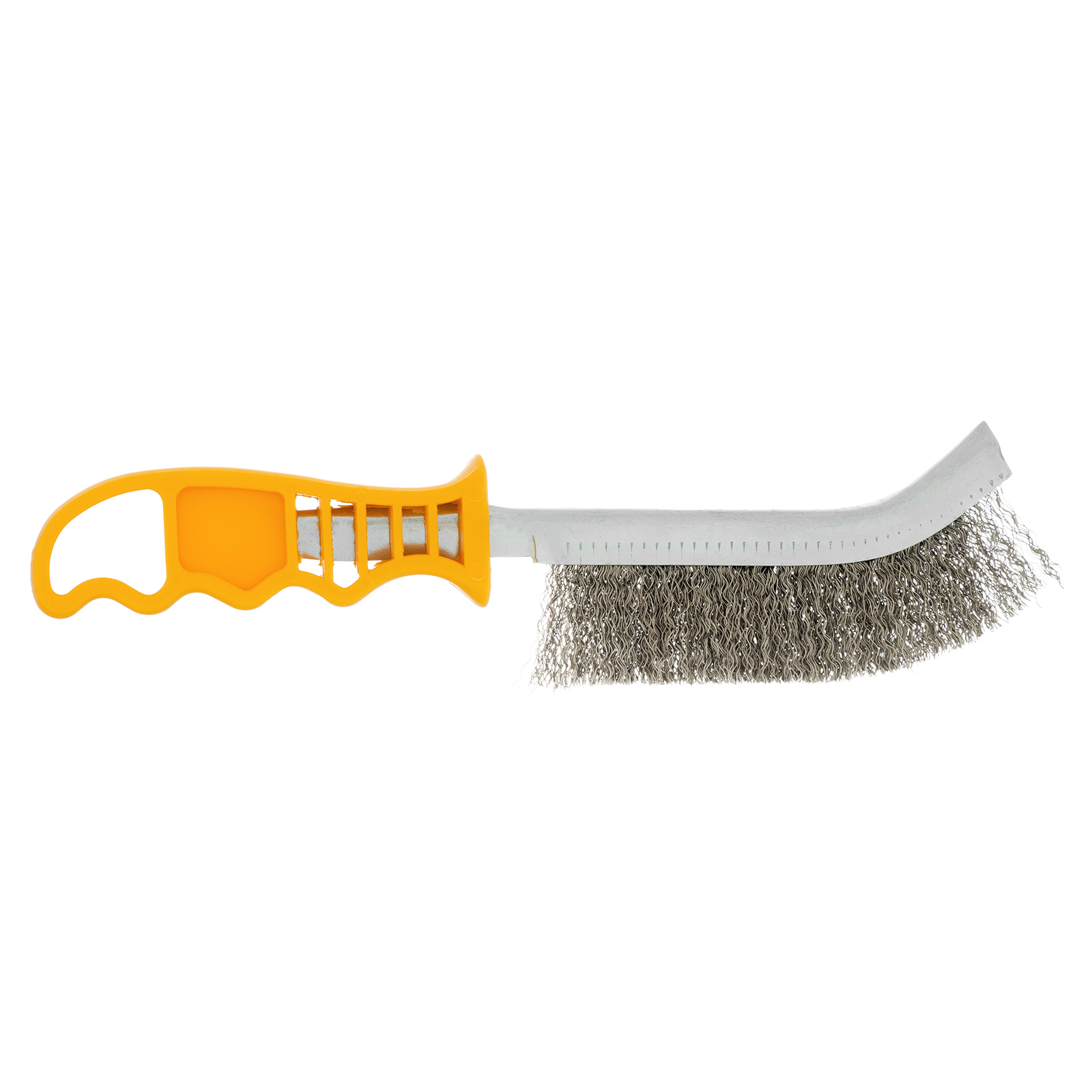 Металлическая зачистная щетка Denzel 748287 с пластмассовой рукояткой и щетиной из нержавеющей проволоки, используется для очищения металлических, деревянных и других поверхностей от ржавчины, загрязнений, остатков лакокрасочных покрытий. Щетина из нержавейки с высокой абразивной способностью обеспечивает эффективность щетки. Благодаря изогнутому корпусу щетка удобна для обработки поверхностей со сложным рельефом. Инструмент пригодится во время строительства, кузовного ремонта, а также на производстве и в быту.