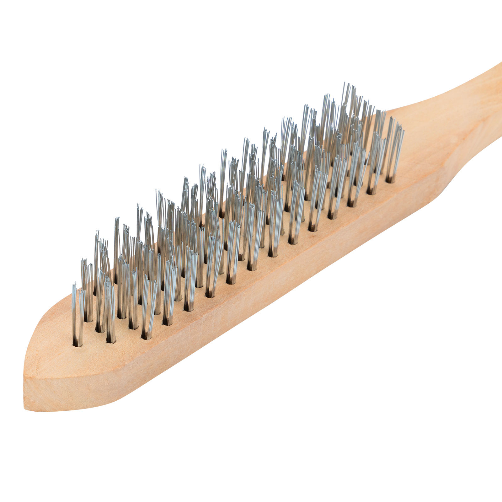 Металлическая пятирядная щетка Sparta 748245 с деревянной ручкой — инструмент для ручного удаления ржавчины, грязи, остатков краски с металлических, деревянных и других поверхностей. Пятирядная щетина обеспечивает качественную обработку. Щеткой пользуются строители, ремонтники, специалисты по кузовному ремонту, пригодится она и в быту.