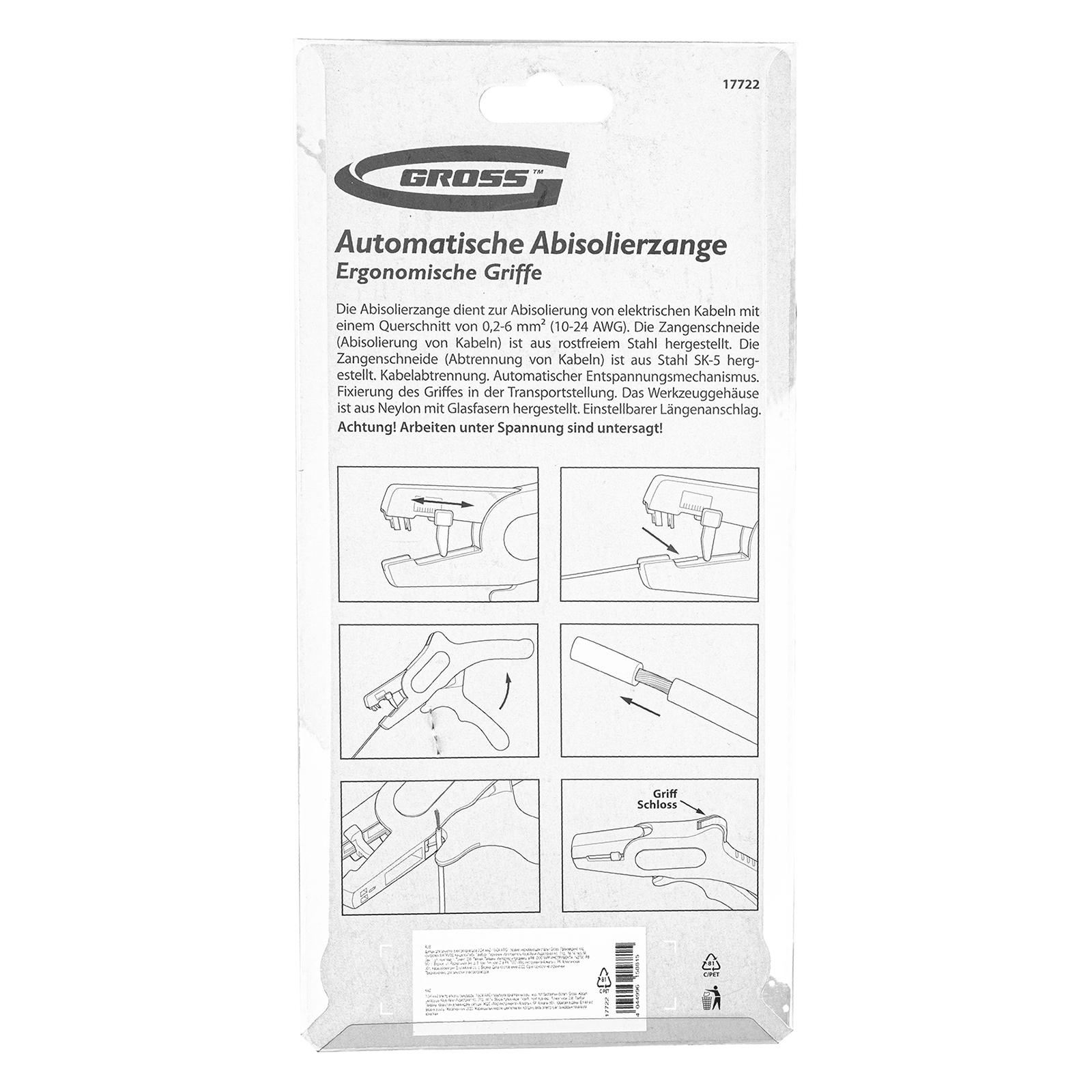 Щипцы для зачистки электропроводов 0.2-6 мм2 (10-24 AWG) лезвие: нержавеющая сталь Gross в Санкт-Петербурге